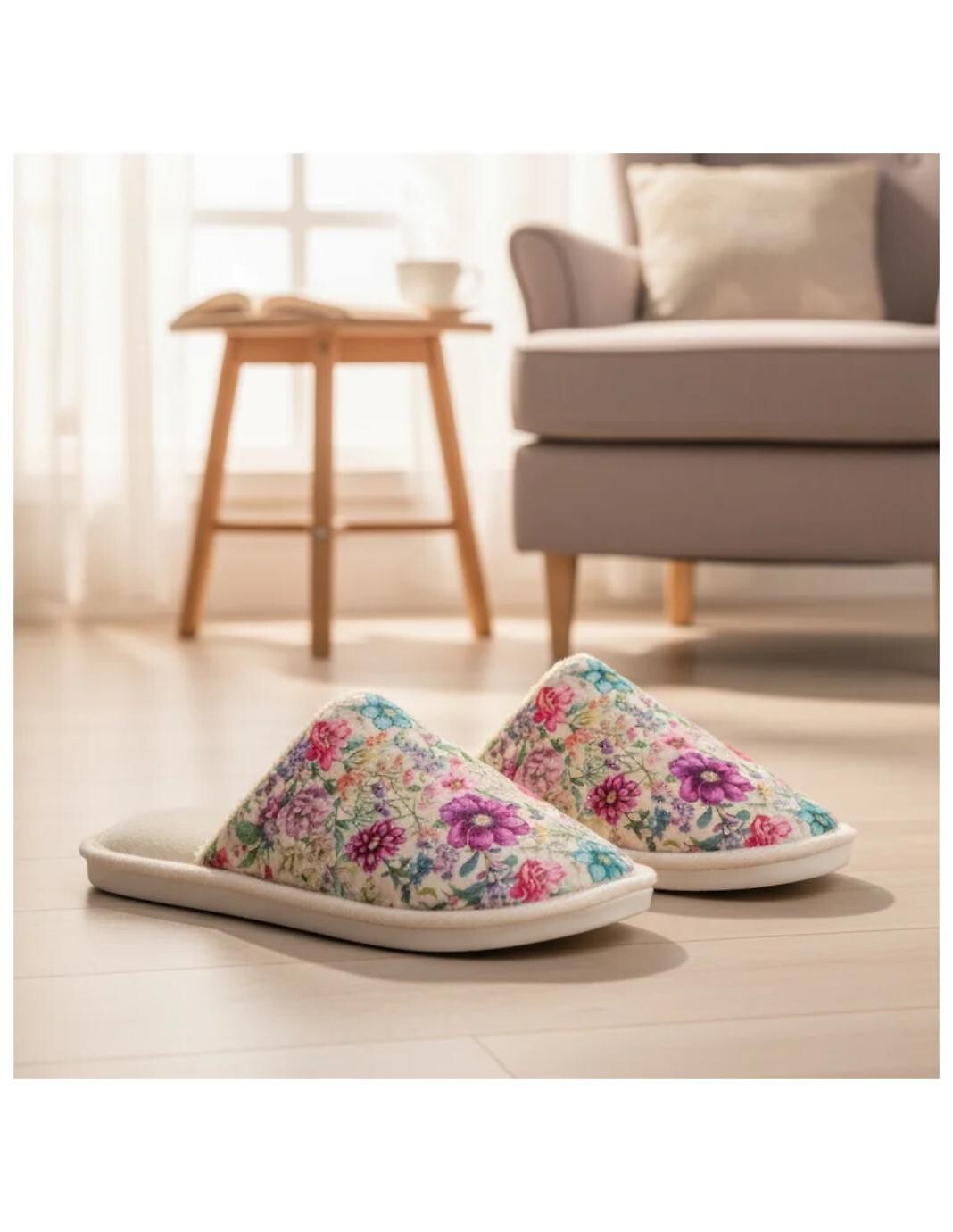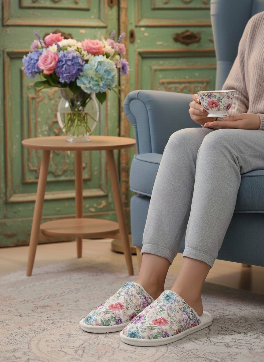 Pohodlné dámské pantofle - květinový motiv - měkká, příjemná na dotek podšívka - stabilní a lehká podešev - baleno v estetické krabičce s nápisem "Děkuji" - ideální jako dárek, k babičce nebo jako poděkování pro milovanou osobu Složení: 100% polyester; podešev 100% termoplastická guma