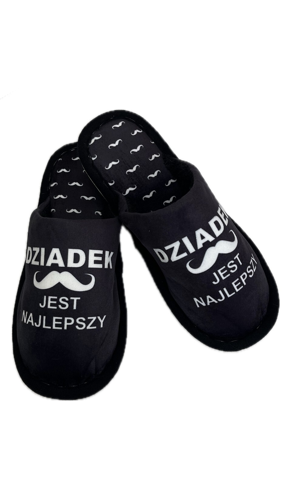 Pánské pantofle příležitostné - nazouvací, s uzavřenou špičkou - s ozdobným nápisem "SUPER GRANDPA" - pogumované, bílá podrážka Složení: 100% polyester; podešev 100% PVC