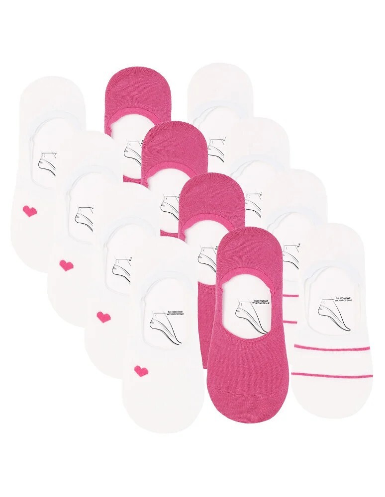 Dámské bavlněné balerínky - jednobarevné nebo zdobené vzorem srdce, proužky - ploché švy, netlačící manžeta - silikon na vnitřní straně paty proti uklouznutí - dostupné barvy: fuchsiová, ecru Složení: 69% bavlna, 28% polyamid, 3% elastan
