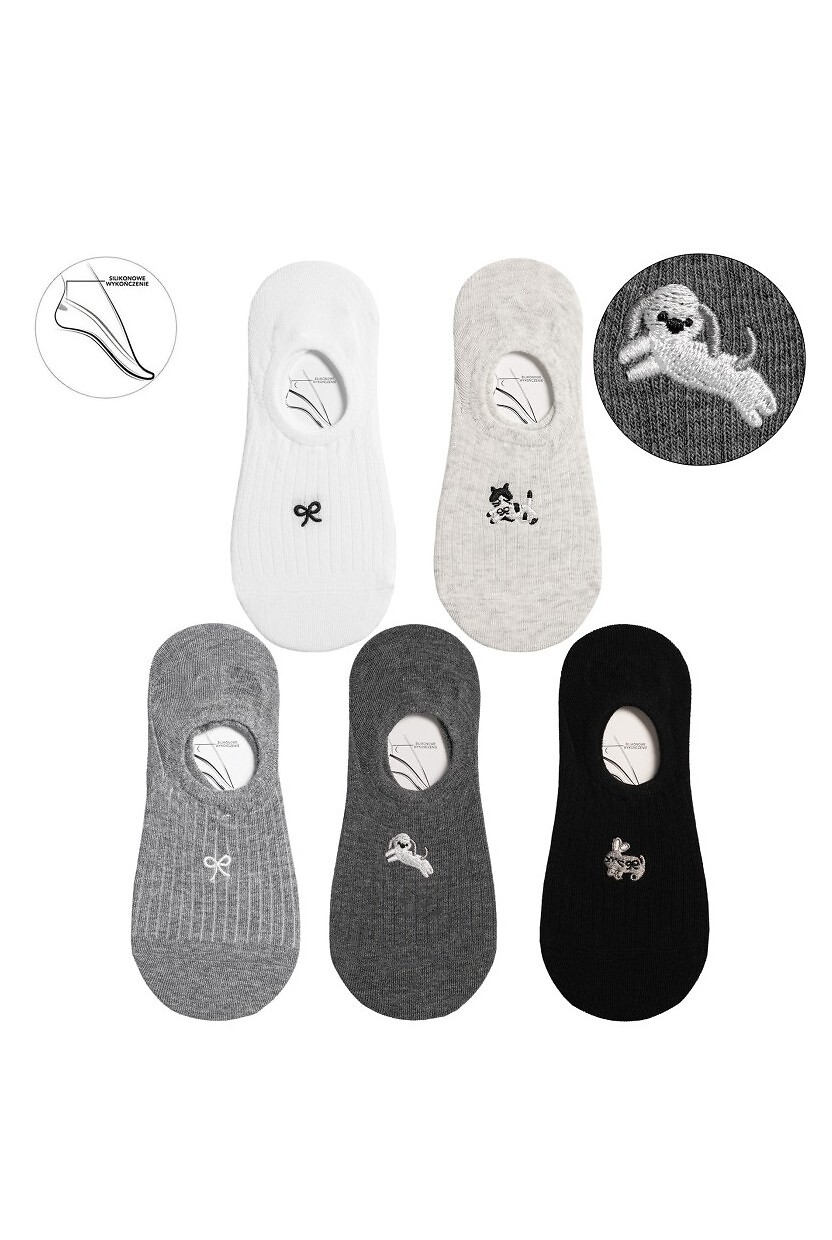 Dámské bavlněné baleríny - zdobené jemnou výšivkou - ploché švy, netlačící manžeta - silikon na vnitřní straně paty proti uklouznutí - dostupné barvy: bílá, světle šedá, šedá, grafitová, černá Složení: 71% bavlna, 24% polyamid, 5% elastan