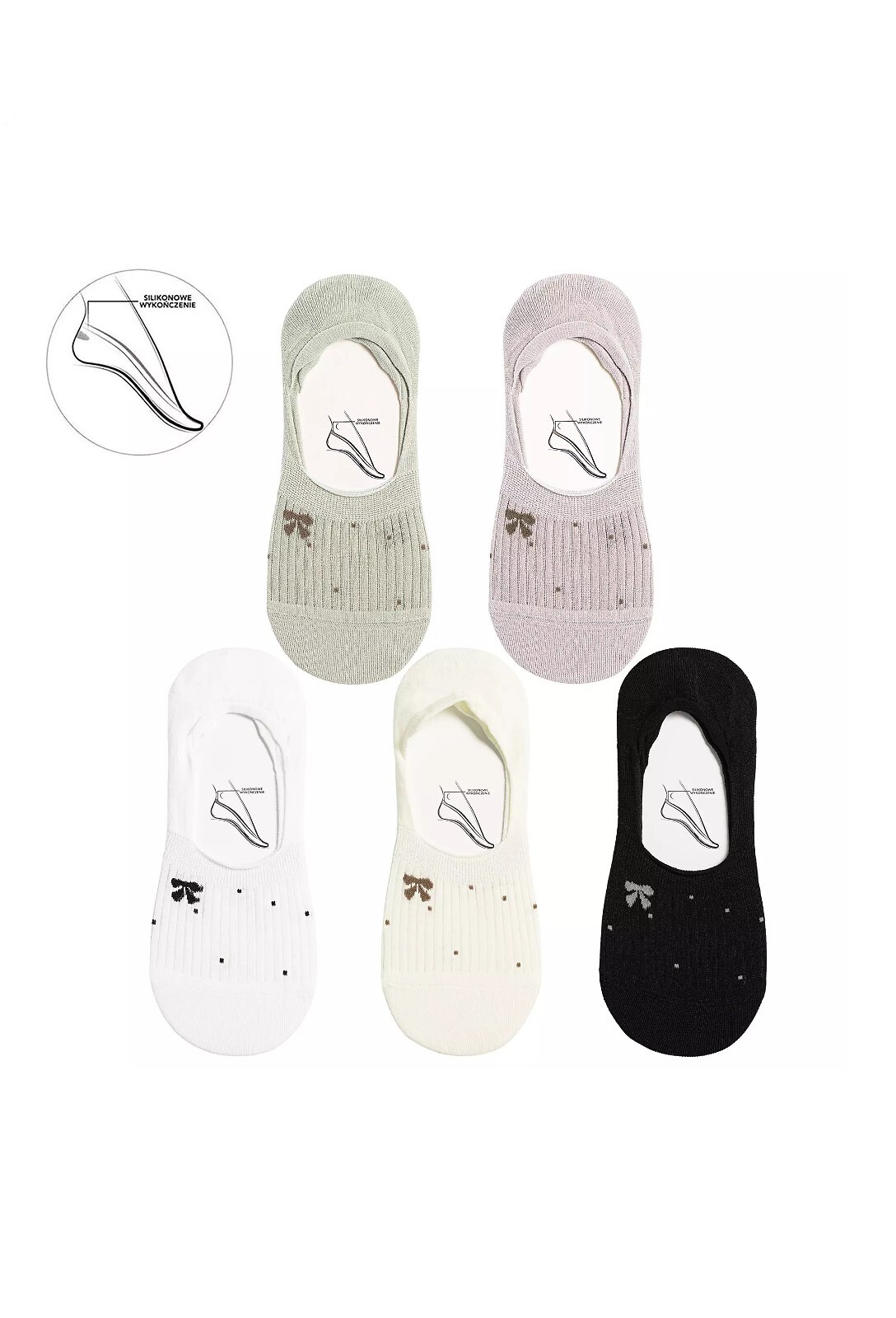Dámské bavlněné balerínky - zdobené jemným vzorem s mašlí - ploché švy, netlačící manžeta - silikon na vnitřní straně paty proti klouzání - dostupné barvy: ecru, béžová, olivová, černá, bílá Složení: 84% bavlna, 13% polyamid, 3% elastan