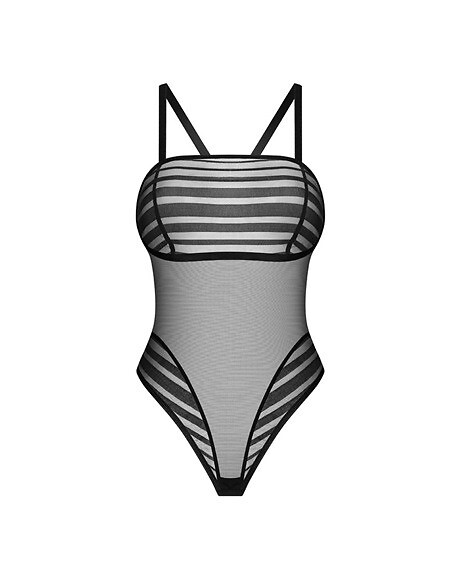 Body z kolekce Lune Bellis zaujme svým klasickým střihem - spodní prádlo je vyrobeno z průhledné, černé síťoviny - široká, nastavitelná ramínka se vzadu kříží - pruhovaný vzor opticky prodlužuje postavu - kvalitní elastické látky - nastavitelná ramínka - vysoký střih na bocích Složení: 94% polyamid, 6% elastan