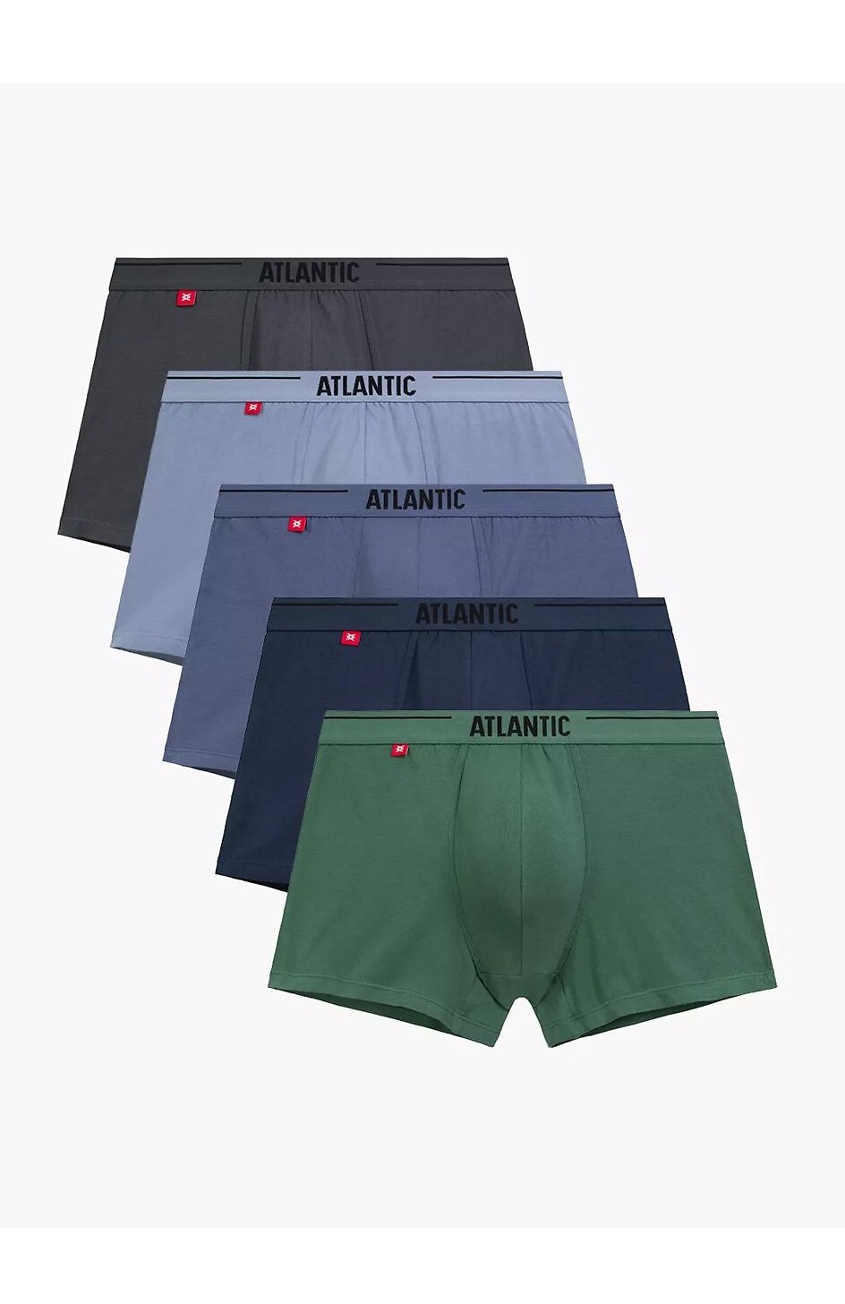 Pánské boxerky - příjemný úplet na dotek - sportovní střih - nízký pas a univerzální délka nohavic - široký elastický pas s nápisem ATLANTIC - perfektně padnoucí - baleno po 5 kusech Složení: 95% bavlna, 5% elastan