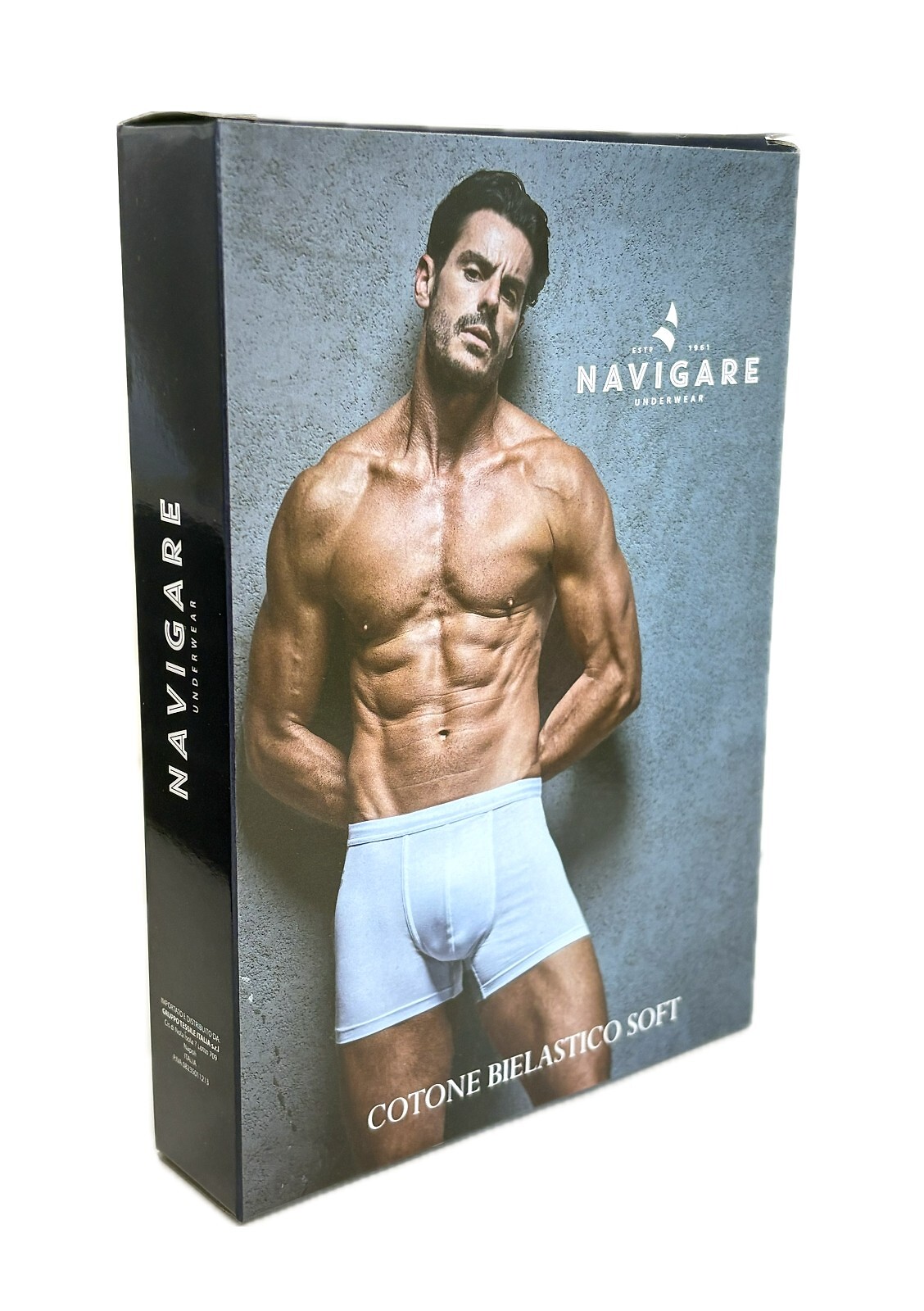 Pánské boxerky - příjemný dotek Stretch Cotton Jersey, druh bavlněného úpletu, který se vyznačuje přidáním elastických vláken (streč) - materiál je pružný a vrací se do původního tvaru - klasický střih - univerzální délka nohavic - elastický pas lemovaný bavlnou - přední část zdobená malým nápisem NAVIGARE - perfektně přizpůsobí postavě - baleno v krabičce Složení: 95% bavlna, 5% elastan