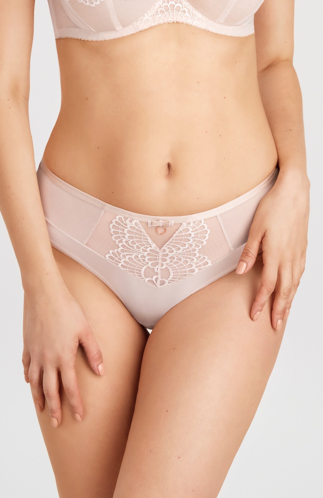 Dámské brazilské kalhotky - širší boky - přední a zadní strana s vyšívanou tylovou vsadkou - bezešvá zadní strana z dvojité síťoviny Složení: 90% polyamid, 7% elastan, 3% polyester