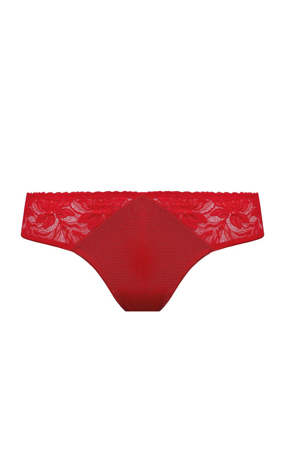 Dámské brazilské kalhotky - prolamovaná krajka v kombinaci se síťovinou - přední strana podšitá jemným tylem - zadní strana s krajkou Složení: 80% polyamid, 15% elastan, 5% bavlna