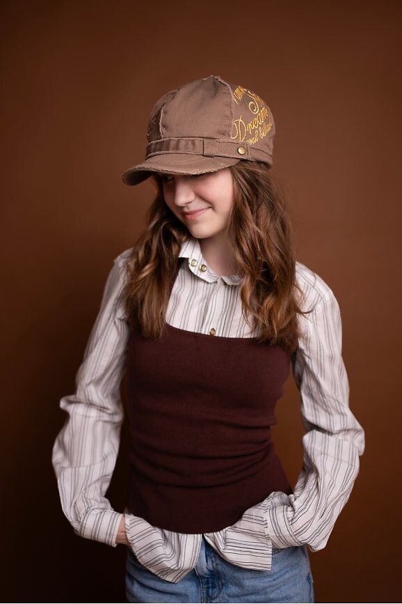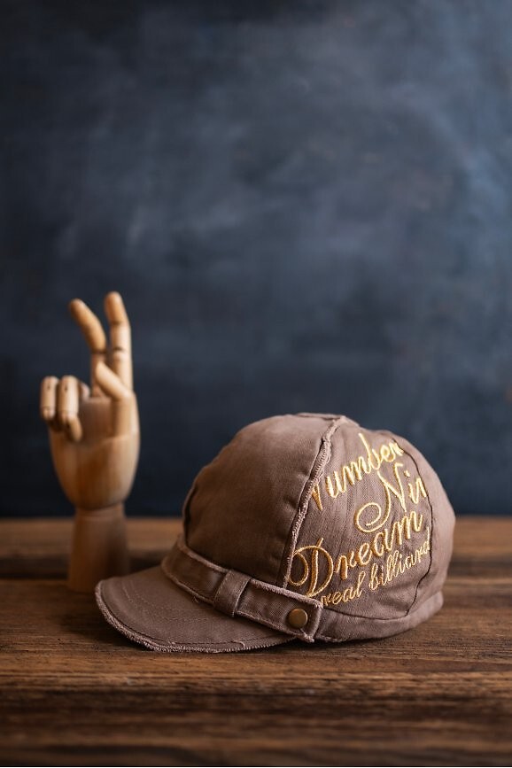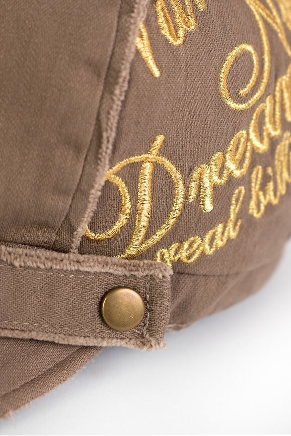 Bavlněná plochá čepice je lehký model s ležérním charakterem - mírně roztřepený povrch - zdobený zlatou výšivkou - vnitřní strana je podšitá pro větší pohodlí - velikost je malá - vhodná pro obvod hlavy do cca 56 cm Složení: 100% bavlna