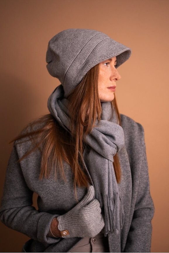 Dámská zimní čepice - s jemným kšiltem, je to jedinečná kombinace klasické pletené čepice s elegantním kloboukovým akcentem - jemné volánky vzadu jí dodávají originální charakter a perfektně padnou na hlavu - model s lehce elegantním stylem, který bude perfektním doplňkem pro ty, kteří si cení nadčasové klasiky a pohodlí. Složení: 100% akryl