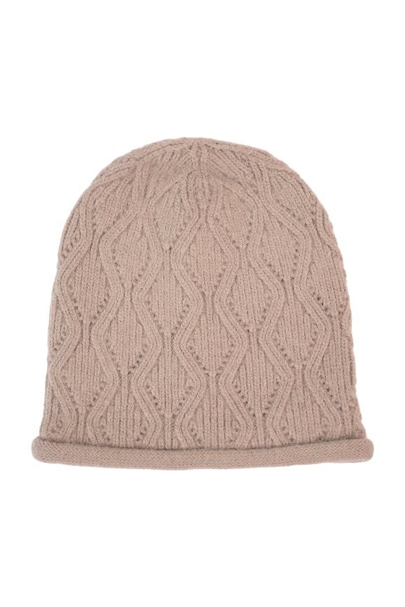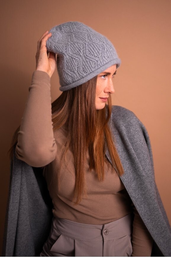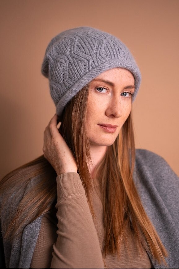 Dámská čepice s mírně delším střihem - s prolamovanou výpletkou, stylový doplněk pro chladnější dny - vyrobená z 50% angory, poskytuje měkkost a příjemnou texturu, zaručující pohodlí při nošení. Složení: 50% angora, 50% akryl