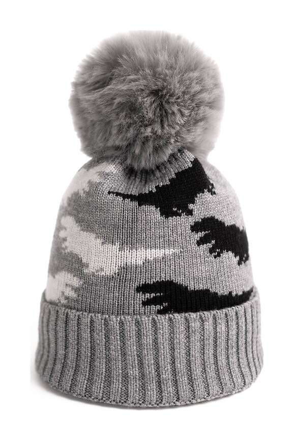 Dětská zimní čepice s bambulkou - grafický vzor - tento model si zamilují všichni malí fanoušci dinosaurů - skvělý doplněk pro každodenní nošení, sáňkování nebo zimní dovolenou - dobře padne na hlavu a chrání před chladem - bambulka z umělé kožešiny Složení: 100% akryl
