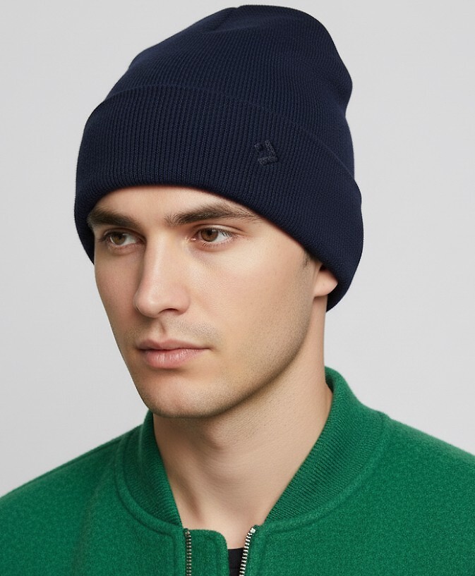 Pánská čepice - dvouvrstvý úplet s jemným žebrováním - přeložený okraj s ozdobnou jemnou výšivkou - ideální pro chladné dny Složení: 50% viskóza, 28% polyester, 22% polyamid