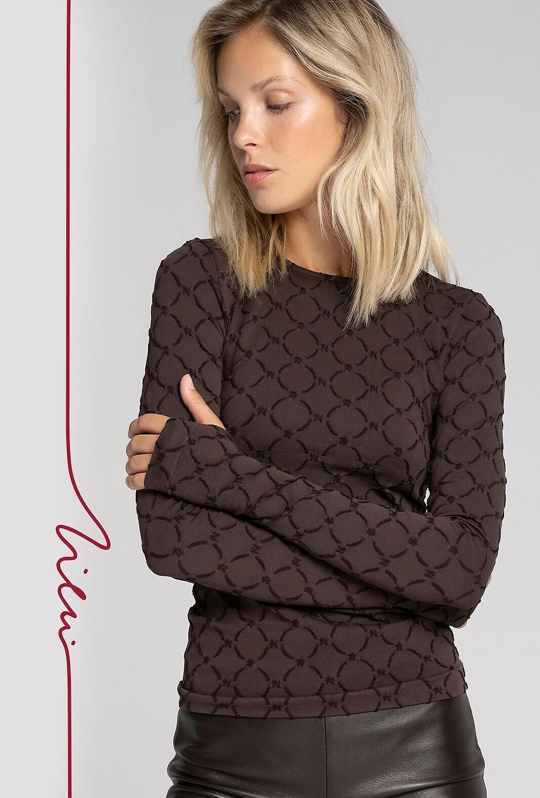 Dámská halenka z kolekce ZieńxGatta - elastický černý materiál - půlkulatý výstřih - geometrický vzor Monogram navržený Maciejem Zieńem - prodloužené rukávy s otvory pro palce Složení: 95% polyamid 5% elastan