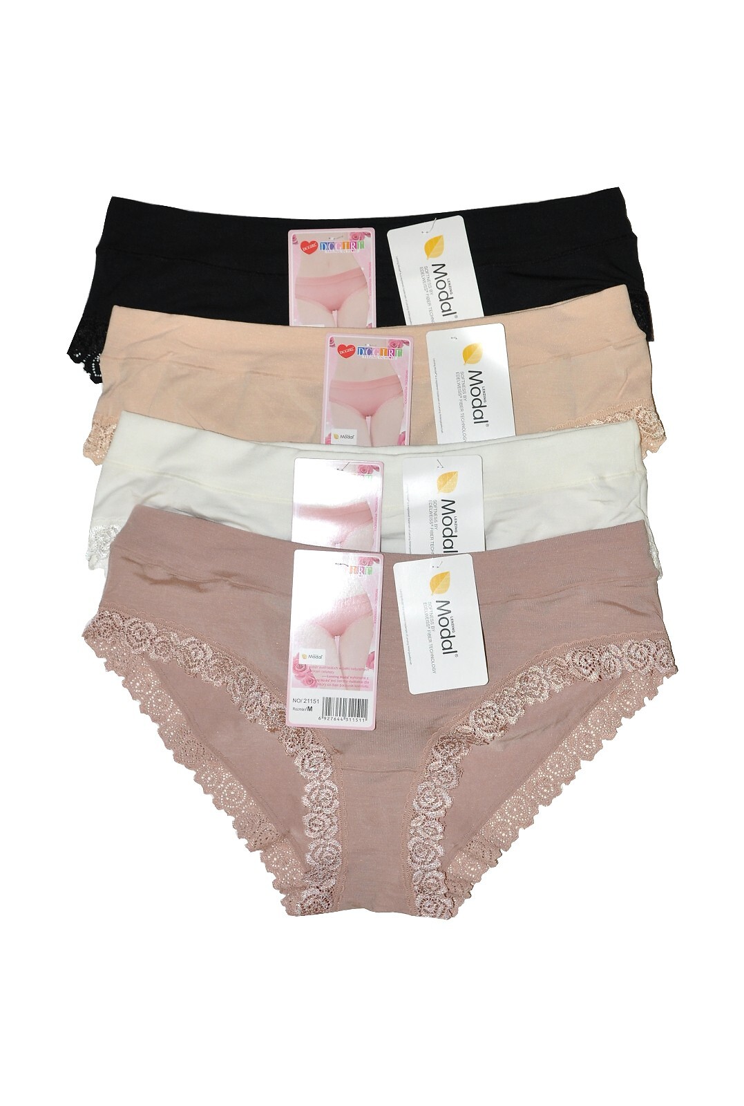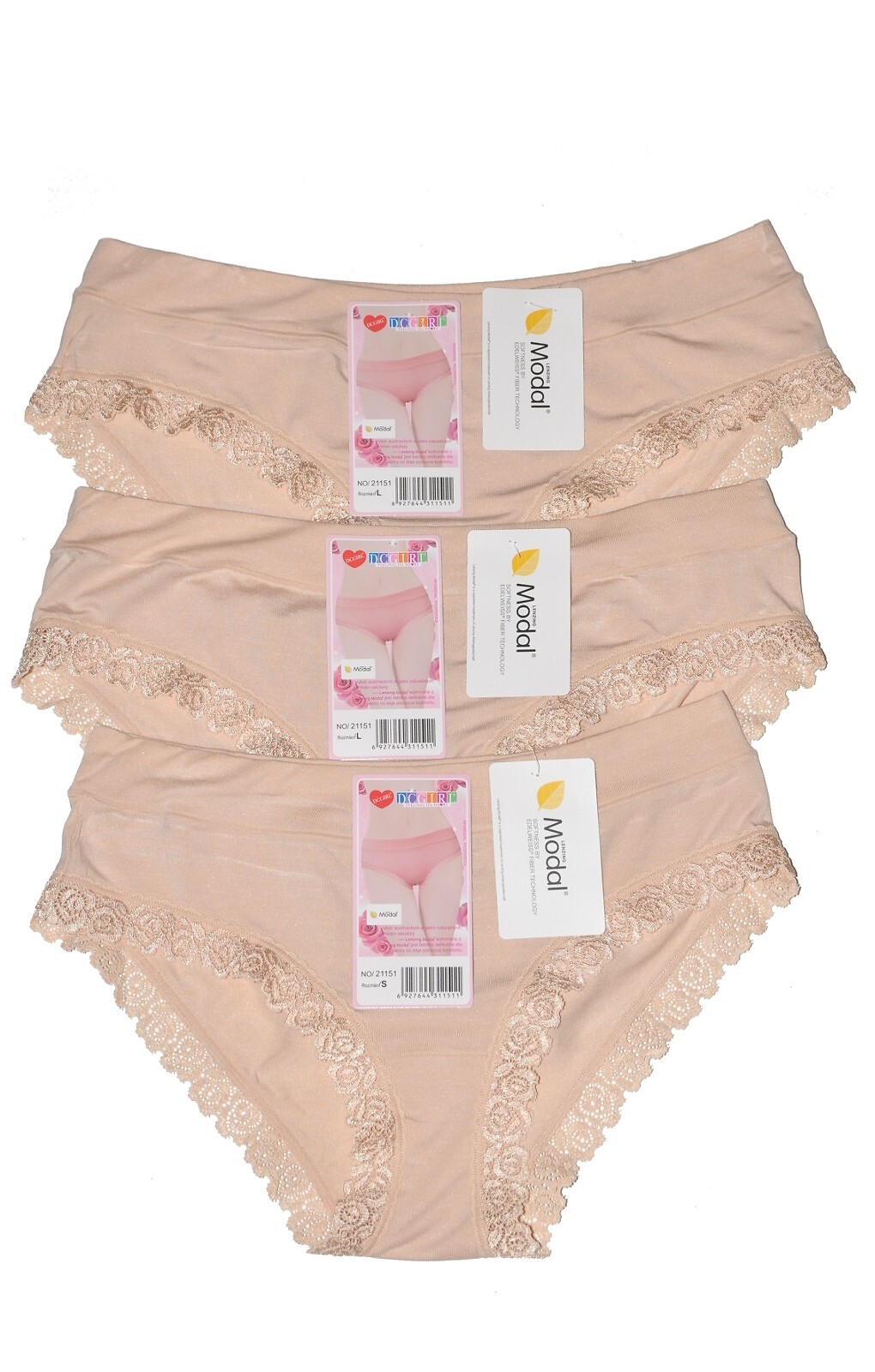 Dámské kalhotky - vyrobené z příjemného modalu - nohavičky lemované krajkou - baleno v plastovém sáčku po 12 kusech dostupné barvy: moka, ecru, béžová, černá - dostupné velikosti v balení: S, M, L, XL Složení: 94% modal, 6% spandex