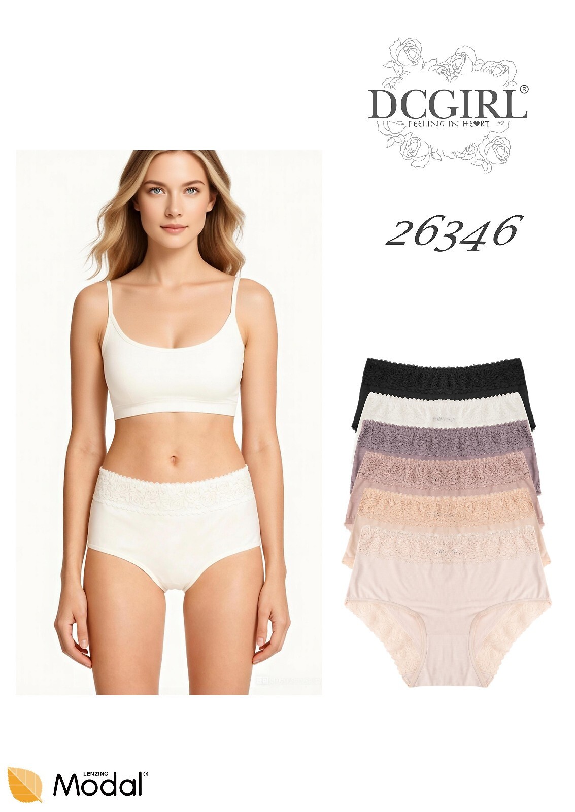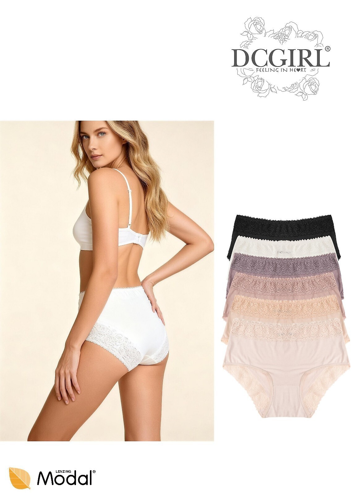 Jednobarevné dámské kalhotky - příjemné na tělo modal - mírně vyrostlé na bocích - pas a nohy zakončeny plochou krajkovou stuhou - baleno v igelitovém sáčku po 12 kusech - dostupné barvy: ecru, černá, béžová, tmavě modrá, mocha - dostupné velikosti v balení: M, L, XL Složení: 94% modal, 6% spandex