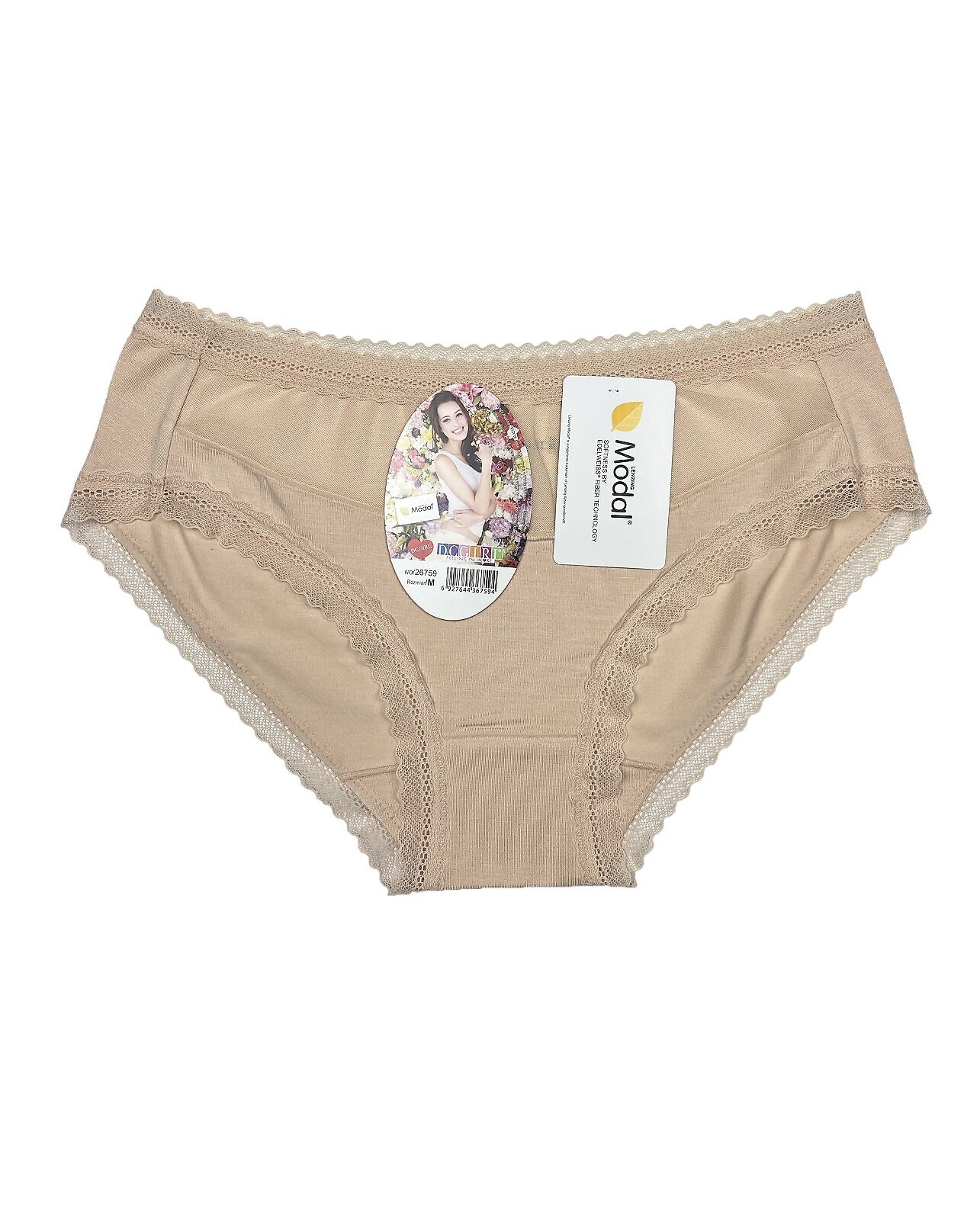 Klasické dámské kalhotky - vyrobené z měkkého modalu - přední část se síťovanou vsadkou - plochá krajka v pase a rozkroku - baleno v plastovém sáčku po 2 kusech, dostupné barvy: béžová, černá, ecru, mocca. Složení: 94% mikromodal, 6% spandex.