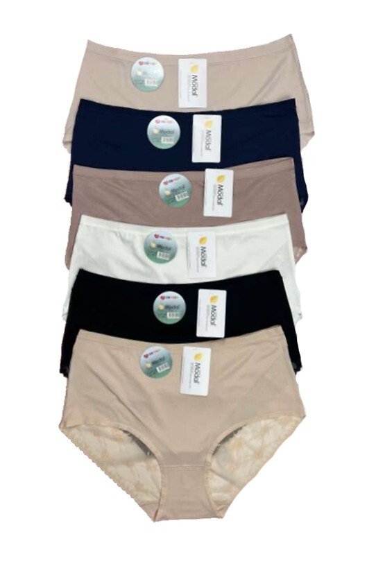 Dámské slipy - z pěkného modalu - vysoký pas, zakryté boky - zadní strana nohavic zakončena květinovou síťovinou - plochá guma v pase - baleno v igelitovém sáčku po 12 kusech dostupné barvy: mocha, ecru, béžová, černá, tmavě modrá - dostupné velikosti v balení: XL, 2XL, 3XL Složení: 94% modal, 6% spandex