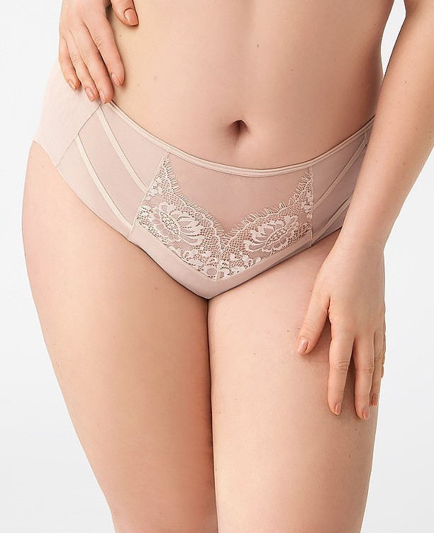 Dámské slipy - plné, uzavřený střih - z jednotné síťoviny - přední část zdobená poutavými krajkovými vsadkami - zadní část ze síťoviny s výřezem Složení: 90% polyamid, 7% elastan, 3% polyester