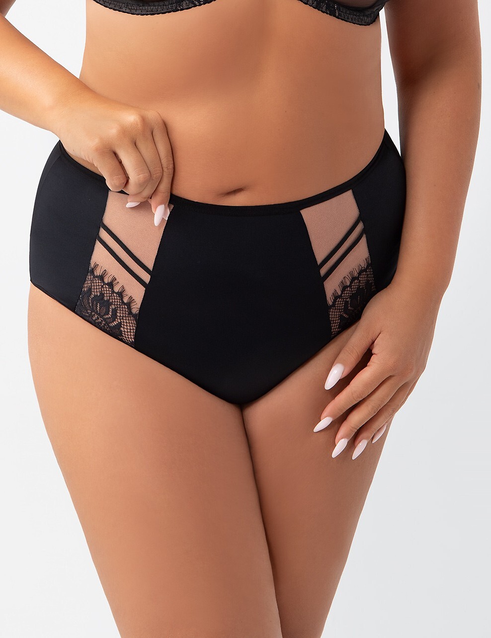 Vysoké, celoplošné dámské kalhotky - vyrobené z hladkého mikrovlákna - zdobené průhlednými síťovanými vsadkami s atraktivním květinovým krajkovým vzorem - zadní strana z dvojitého tylu - neviditelné pod oblečením Složení: 90% polyamid, 7% elastan, 3% polyester