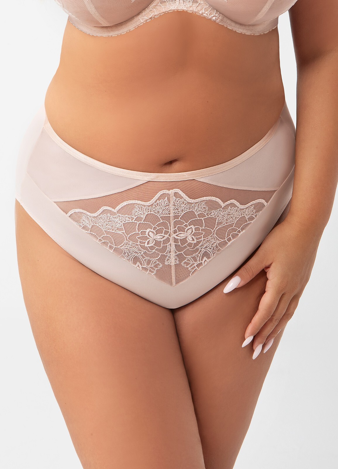 Dámské kalhotky - z dvojité síťoviny - krajková vsadka vpředu - plochý elastický pas - vysoké, na bocích vykrojené Složení: 90% polyamid, 7% elastan, 3% polyester