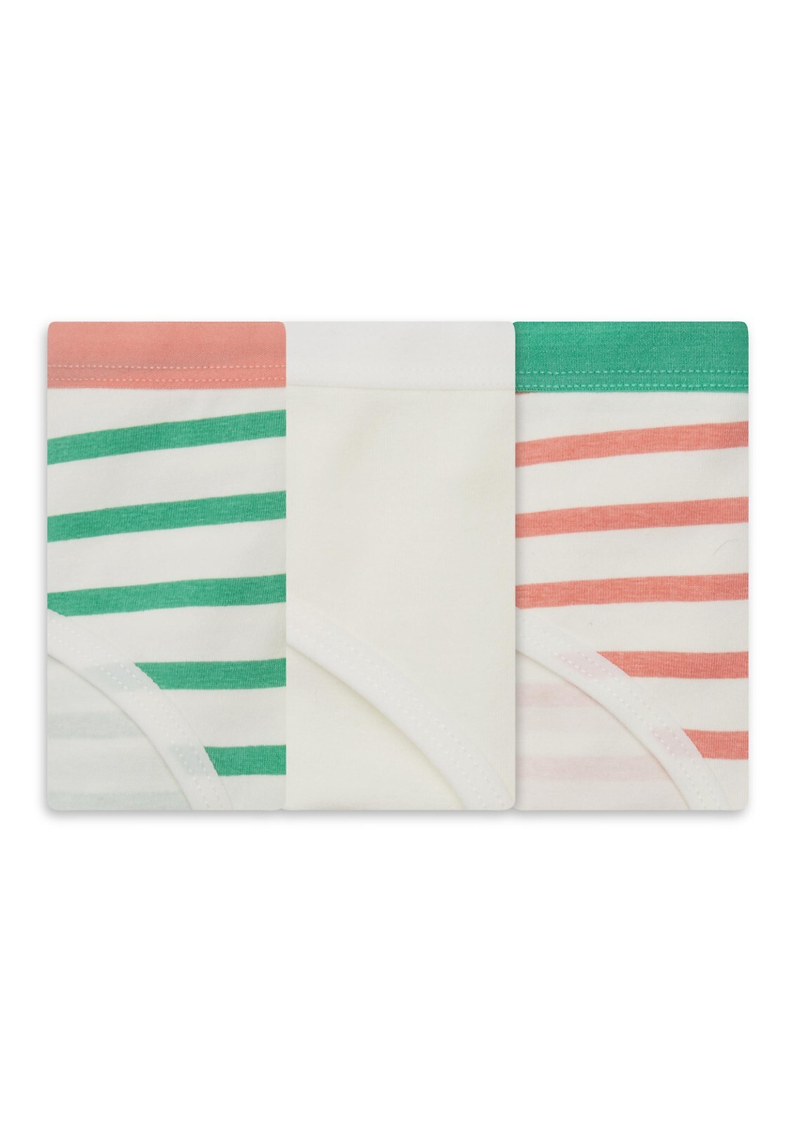 Bavlněné dámské kalhotky - zdobené kontrastním vzorem - klasický střih, bikiny - baleno v krabičce po třech kusech v následujících barvách: ecru-malina, ecru, ecru-zelená Složení: 95% bavlna, 5% elastan