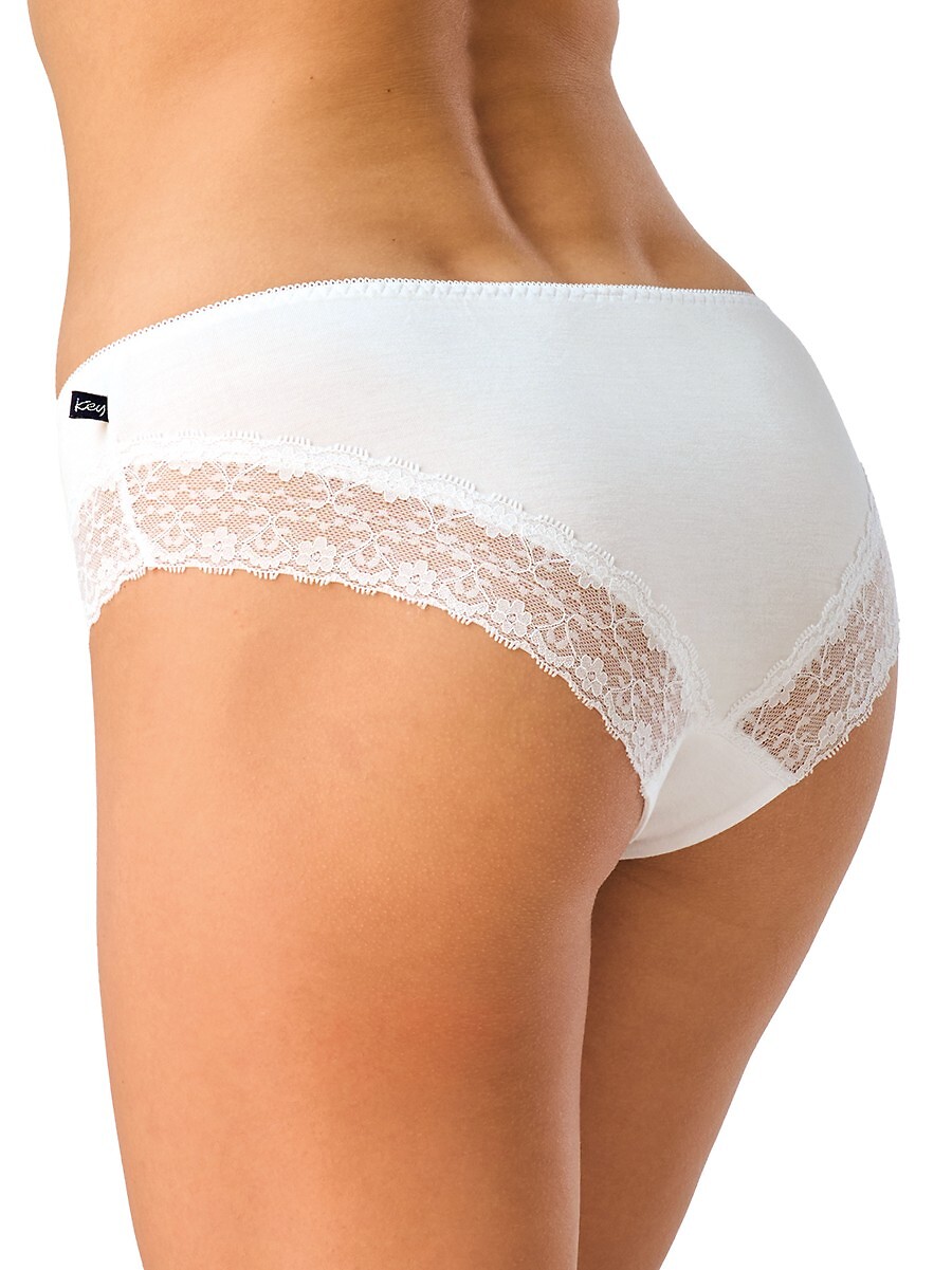 Dámské mini bikinové kalhotky - klasický střih - vyrobené z vysoce kvalitní viskózy - nohavice zakončené krajkovými vsadkami - plochý elastický pas - baleno v krabičce po dvou kusech Složení: 95% viskóza, 5% elastan