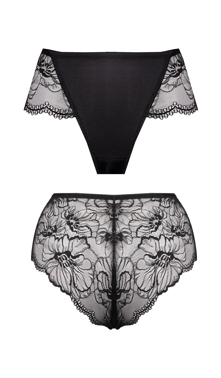 Dámské kalhotky - vysoký pas - z hladké mikrovlákna - boky a zadní část nohavic z atraktivní krajky s květinovým potiskem - široké boky - zadní část plochá Složení: 83% polyamid, 12% elastan, 5% bavlna