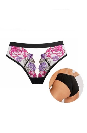 Dámské kalhotky - klasický střih - přední část z tylové síťoviny s efektní květinovou výšivkou - zadní část z dvojité tylové síťoviny - plochý, pohodlný elastický pas Složení: 90% polyamid, 7% elastan, 3% polyester