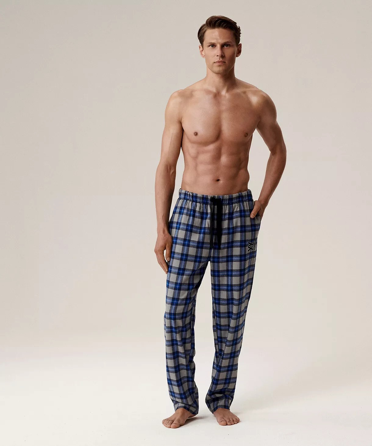 Pánské pyžamové kalhoty - z teplého flanelu - kostkovaný potisk - stahovací šňůrka v pase - boční kapsy - boční strana zdobená drobnou výšivkou Složení: 100% bavlna