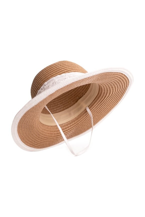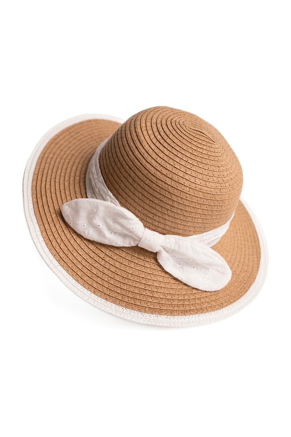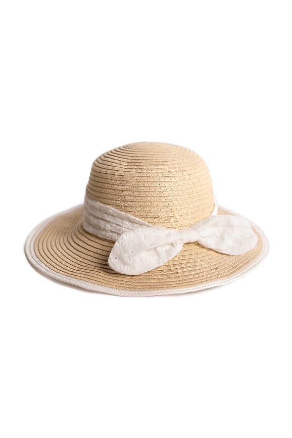 Dívčí klobouk s kapucí - lehký design ideální na léto - jednoduchá, plochá hlava a krátká krempa jí dodávají elegantní charakter - zdobený bílou šerpou s mašlí dodává jemný akcent - model je vybaven gumičkou pod krkem - nastavitelný potní pásek umožňuje lepší přizpůsobení hlavě dítěte Složení: 100% papír