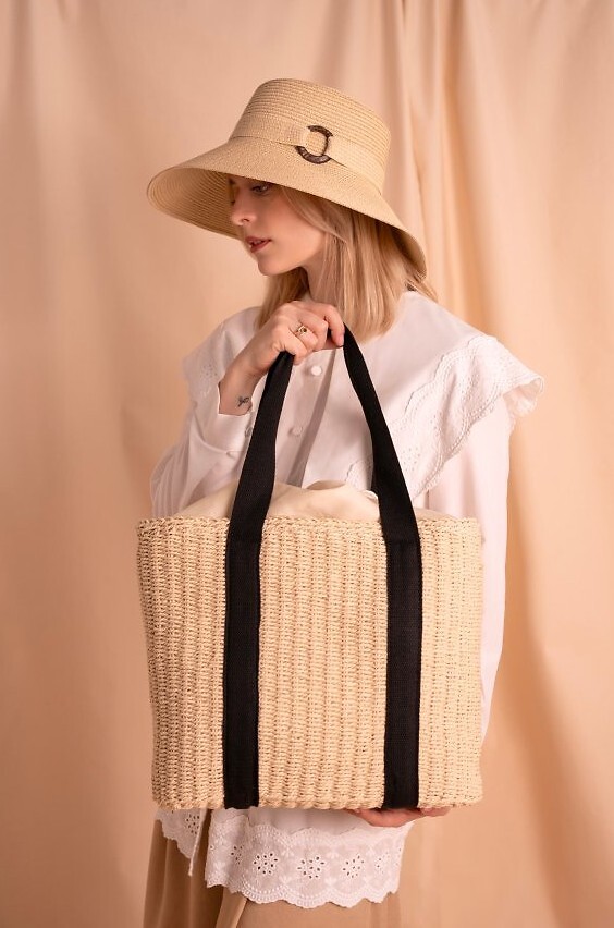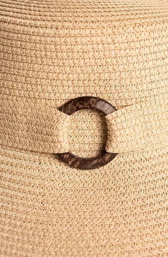 Elegantní dámský letní klobouk s větší krempou - ve světlé pískové barvě - mírně zvětšená krempa poskytuje širší krytí, chrání nejen obličej, ale i horní linii ramen a krk - design je veden v elegantním tónu - ozdobný pásek s dřevěným kroužkem - má nastavitelný potní pásek Složení: 100% papír