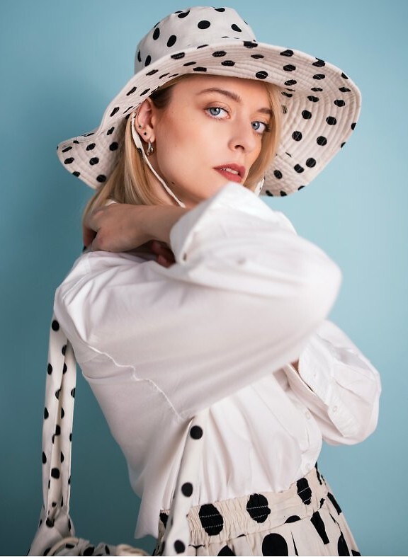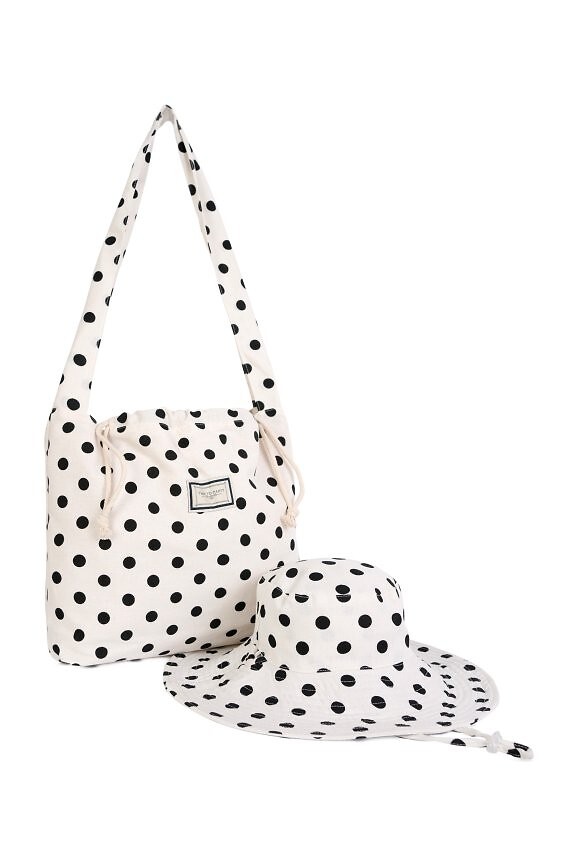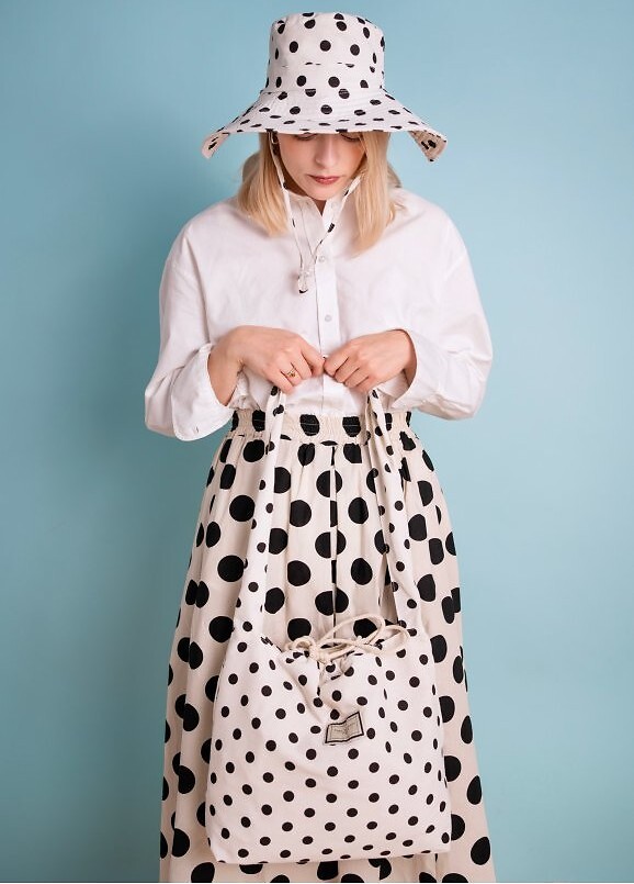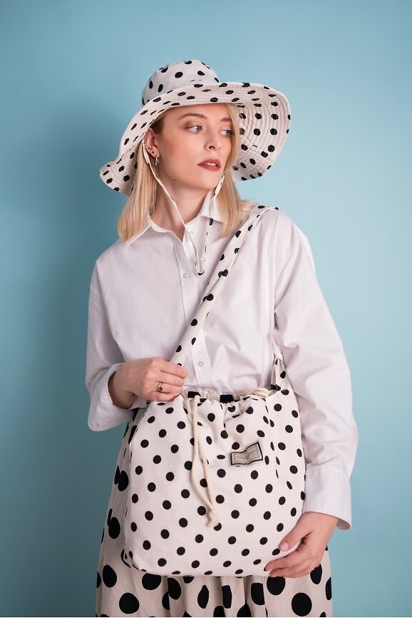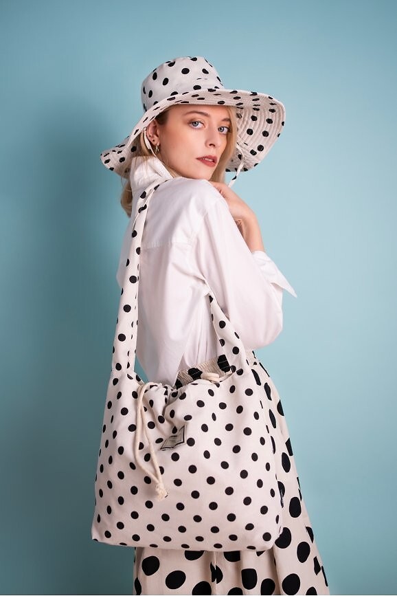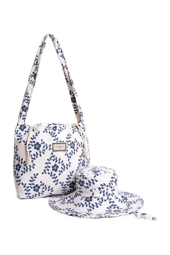 Plážová bavlněná souprava - klobouk a taška se vzory - letní souprava z měkké bavlny - praktické řešení pro dovolené i každodenní nošení v letní sezóně - klobouk s poměrně širokým kšiltem a odnímatelnou šňůrkou na krk - prostorná taška ve vzoru laděném s kloboukem - taška má podšívku a malou vnitřní kapsu na drobnosti - přírodní tkanina zajišťuje pohodlí při nošení v teplých dnech Složení: 100% bavlna