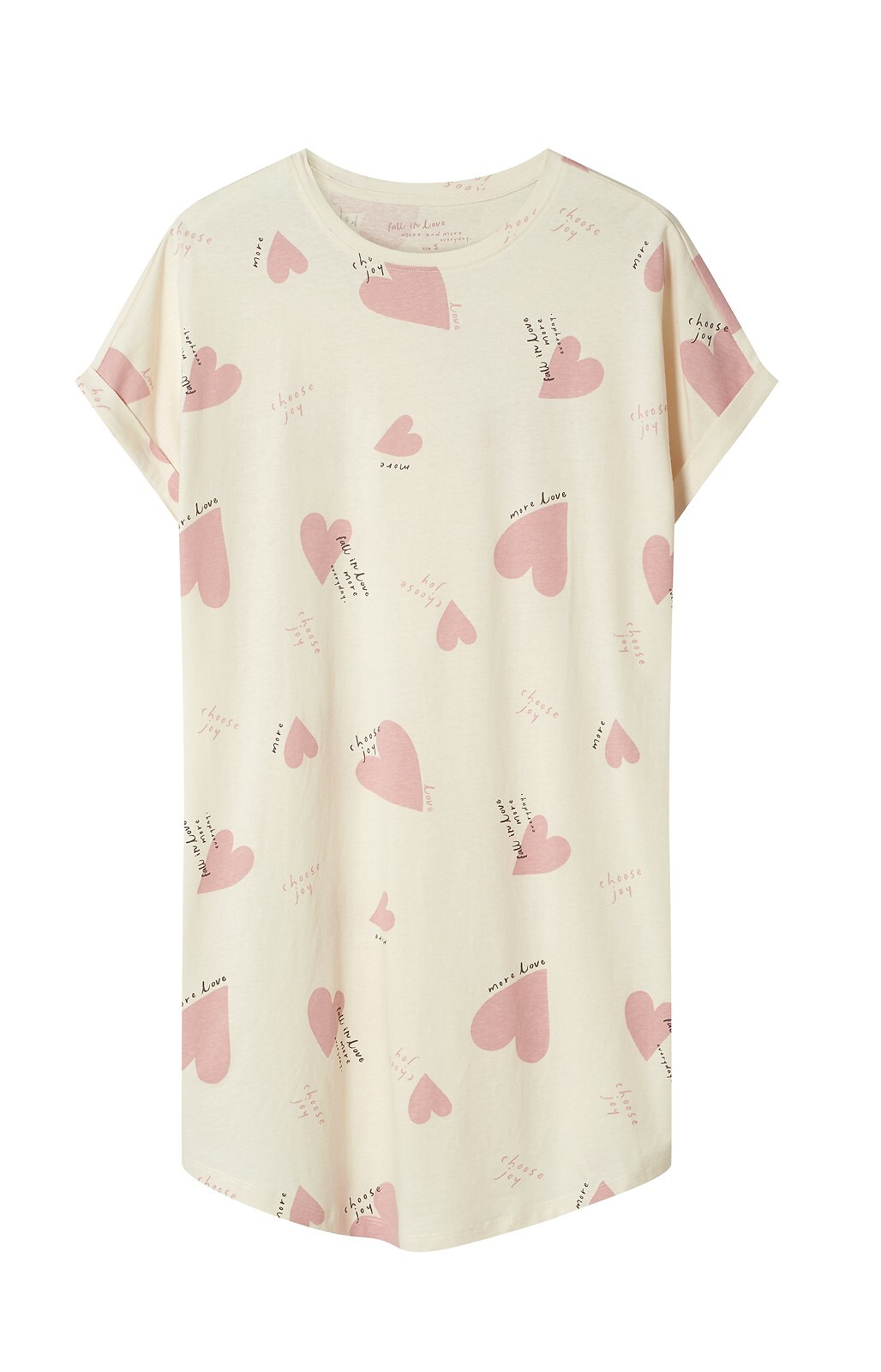 Dámská bavlněná košile - vzor srdce - krátké rukávy - kulatý výstřih - volný, ležérní střih - délka nad kolena - baleno v plastovém sáčku Složení: 100% bavlna