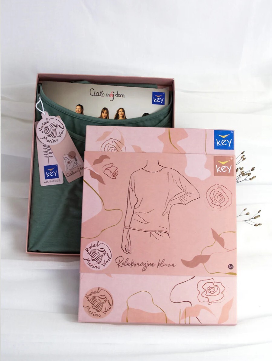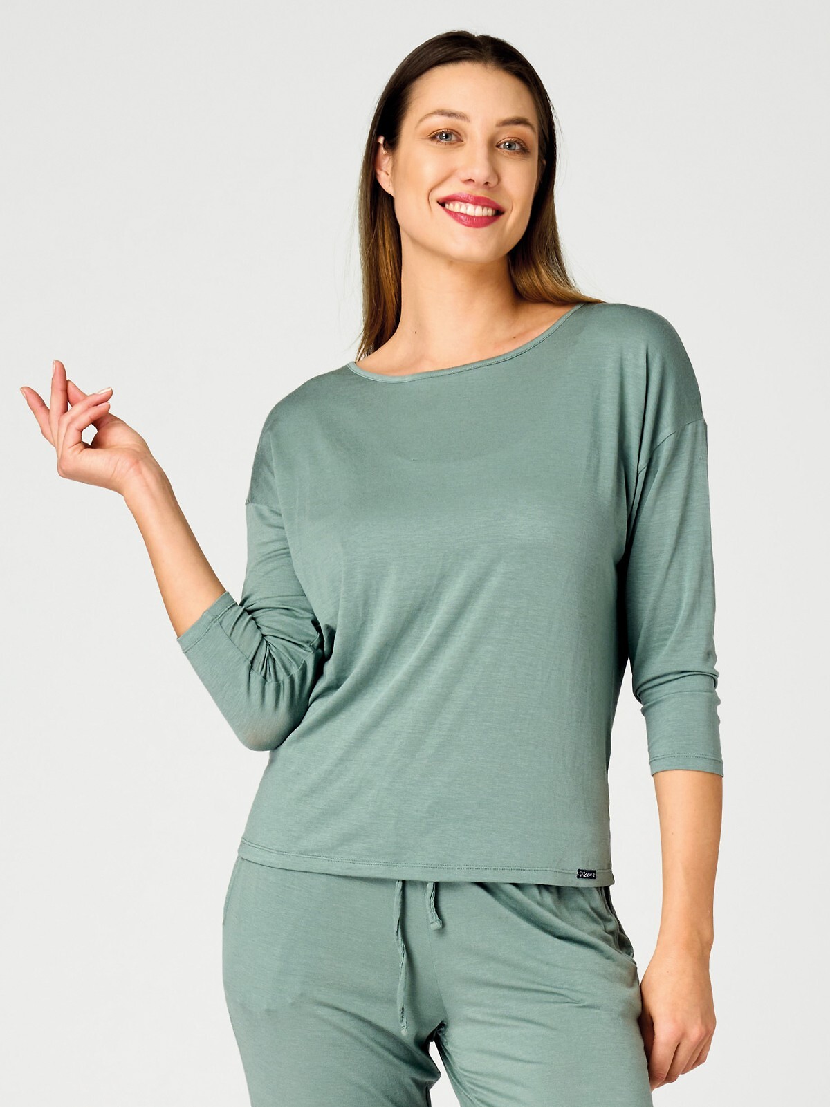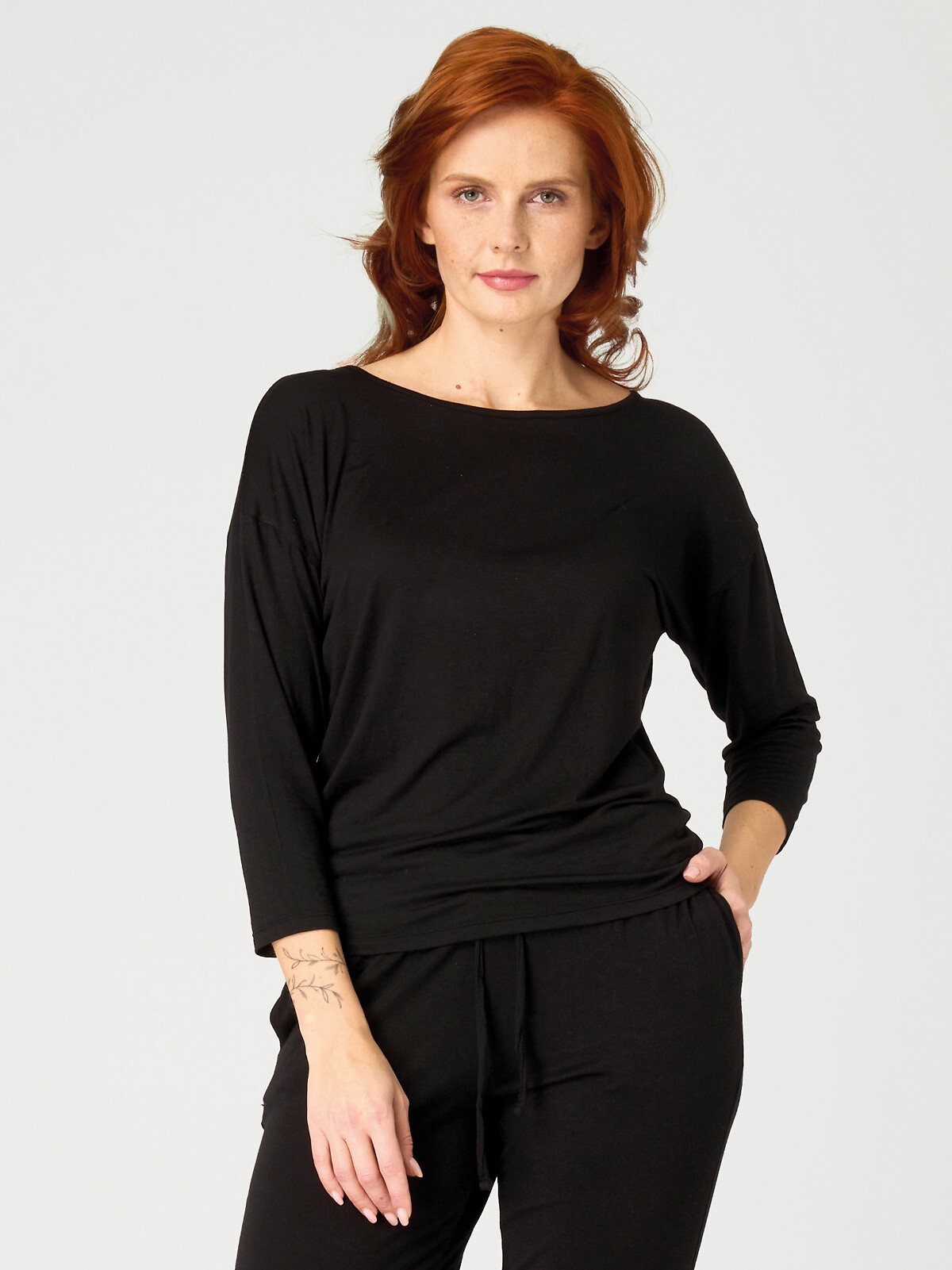 Dámské volnočasové tričko/halenka - vyrobeno z kombinace modalu, vlny a elastanu - výjimečně příjemný a hřejivý materiál - půlkulatý výstřih - 3/4 kimonové rukávy - baleno v krabičce Složení: 85% modal, 10% vlna, 5% elastan