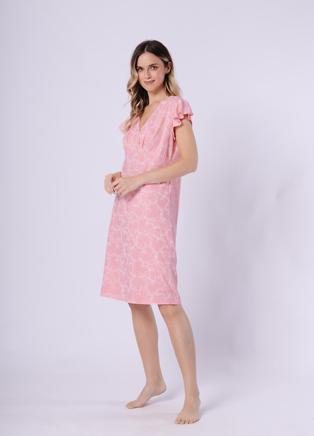 Dámská košile - vzorovaná bavlna - lehce nařasený výstřih do V - krátké motýlí rukávy - délka ke kolenům Složení: 100% bavlna