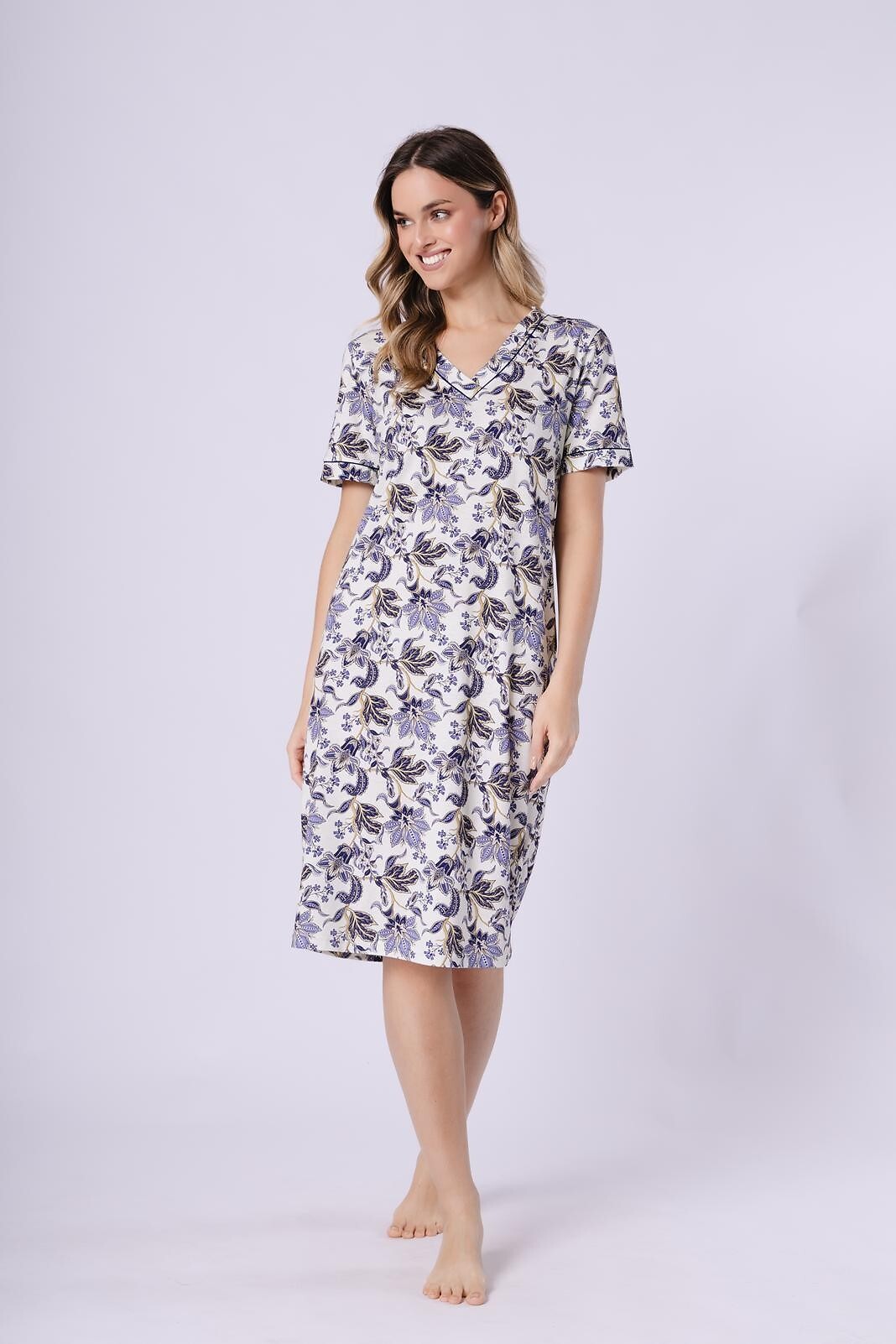 Dámská bavlněná košile - květinový potisk - výstřih do V - krátké rukávy - délka ke kolenům - baleno v plastovém sáčku Složení: 100% bavlna