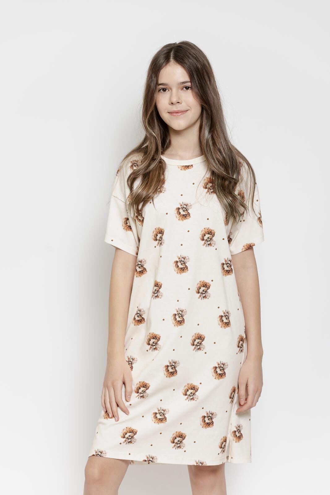 Dívčí tričko - kvalitní měkká bavlna - krátké rukávy - zdobené barevným vzorem - délka nad kolena - baleno v plastovém sáčku Složení: 100% bavlna
