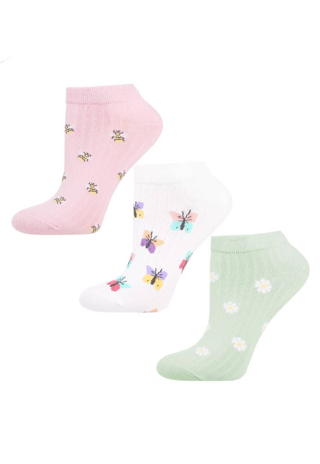 Dámské kotníkové ponožky - vyrobené z vysoce kvalitní bavlny - zdobené vzorem - ideální pro každodenní nošení - perfektně padnou na nohy - poskytují vysoký komfort nošení - dostupné barvy: růžová/včelí, bílá/motýlí, zelená/heřmánková - (náhodně vybrány) Složení: 69% bavlna, 28% polyamid, 3% elastan