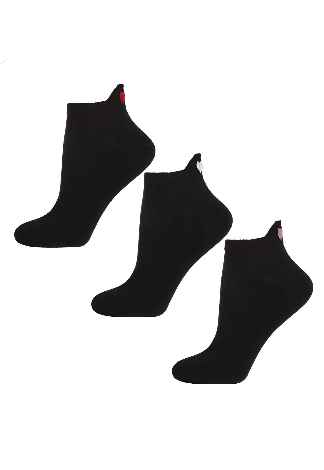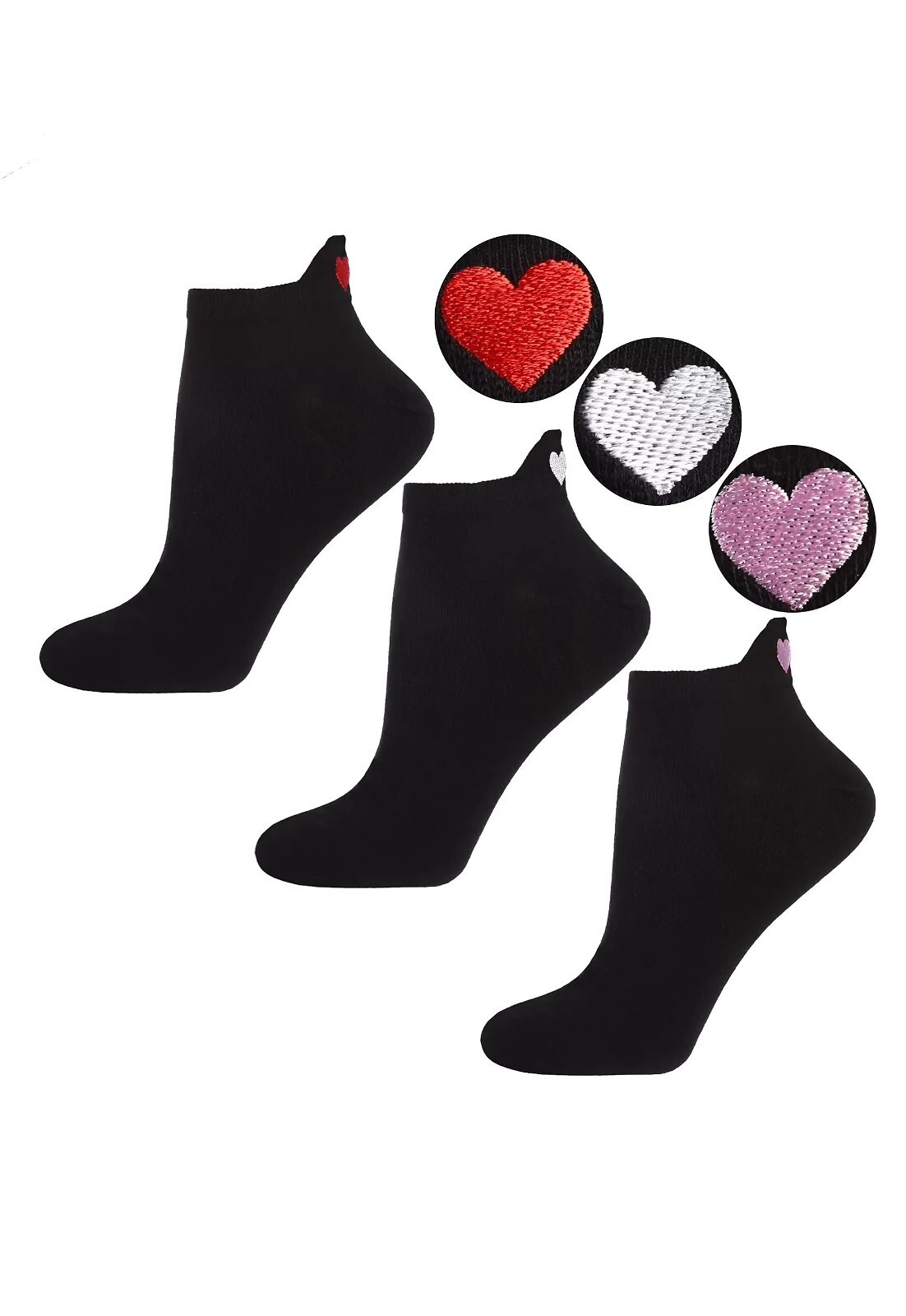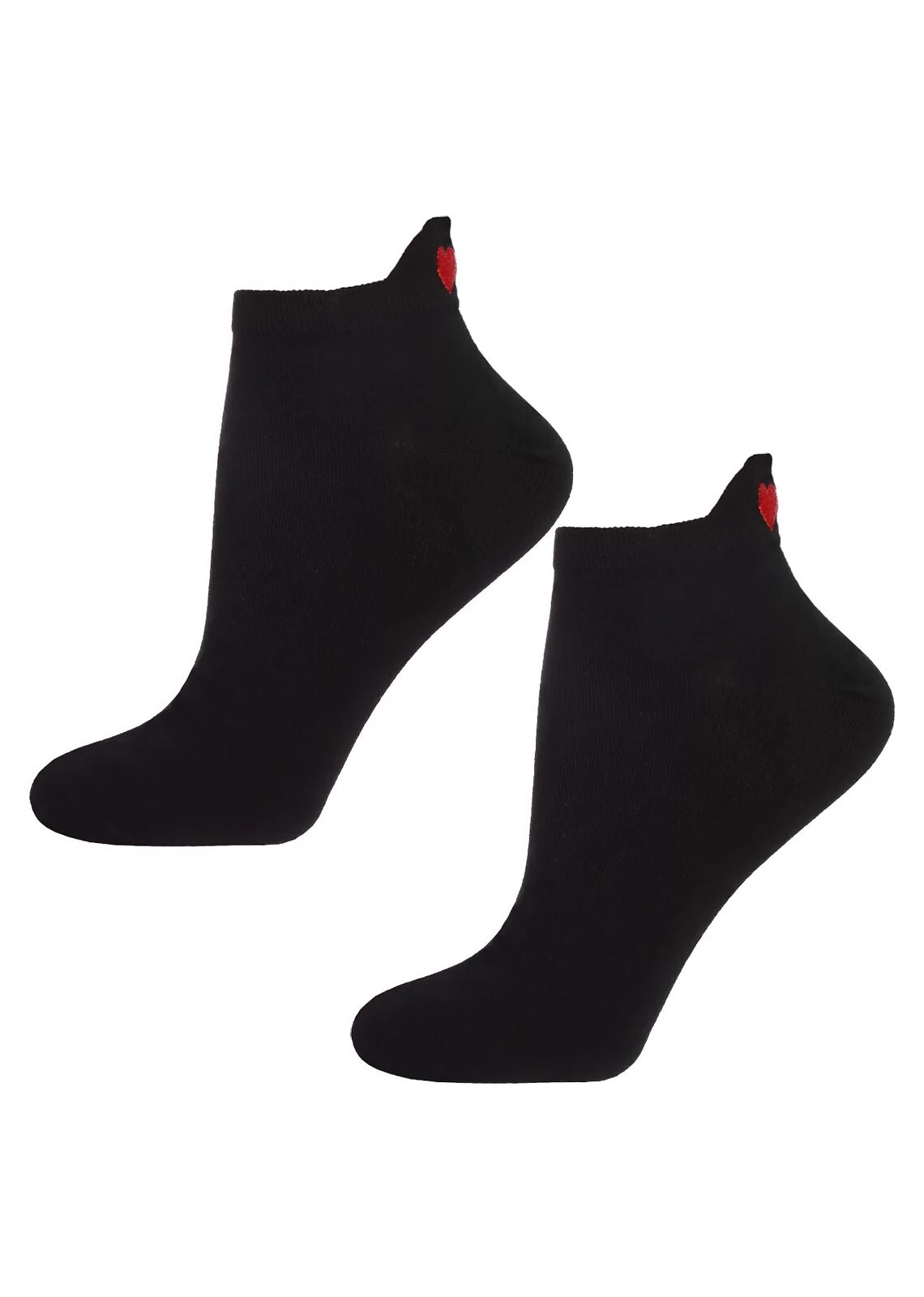 Dámské bavlněné ponožky - jednobarevné - pata je zdobena barevnými aplikacemi - Barva ponožek - černá, barvy aplikací (srdíčko) - růžová, červená, bílá (náhodně vybrány) Složení: 69% bavlna, 28% polyester, 3% elastan