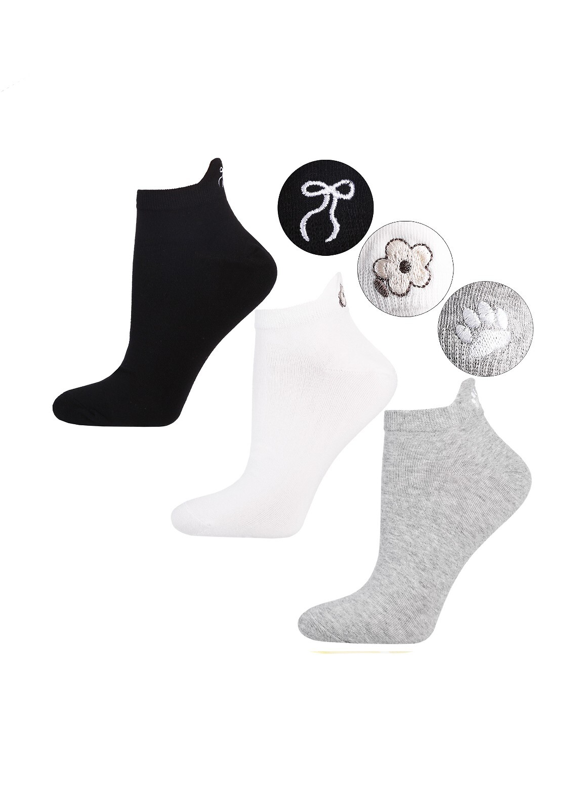Dámské bavlněné ponožky - plné - podpatek zdobený aplikacemi - Dostupné barvy: bílá, šedá, černá - vybrány náhodně Složení: 69% bavlna, 28% polyester, 3% elastan