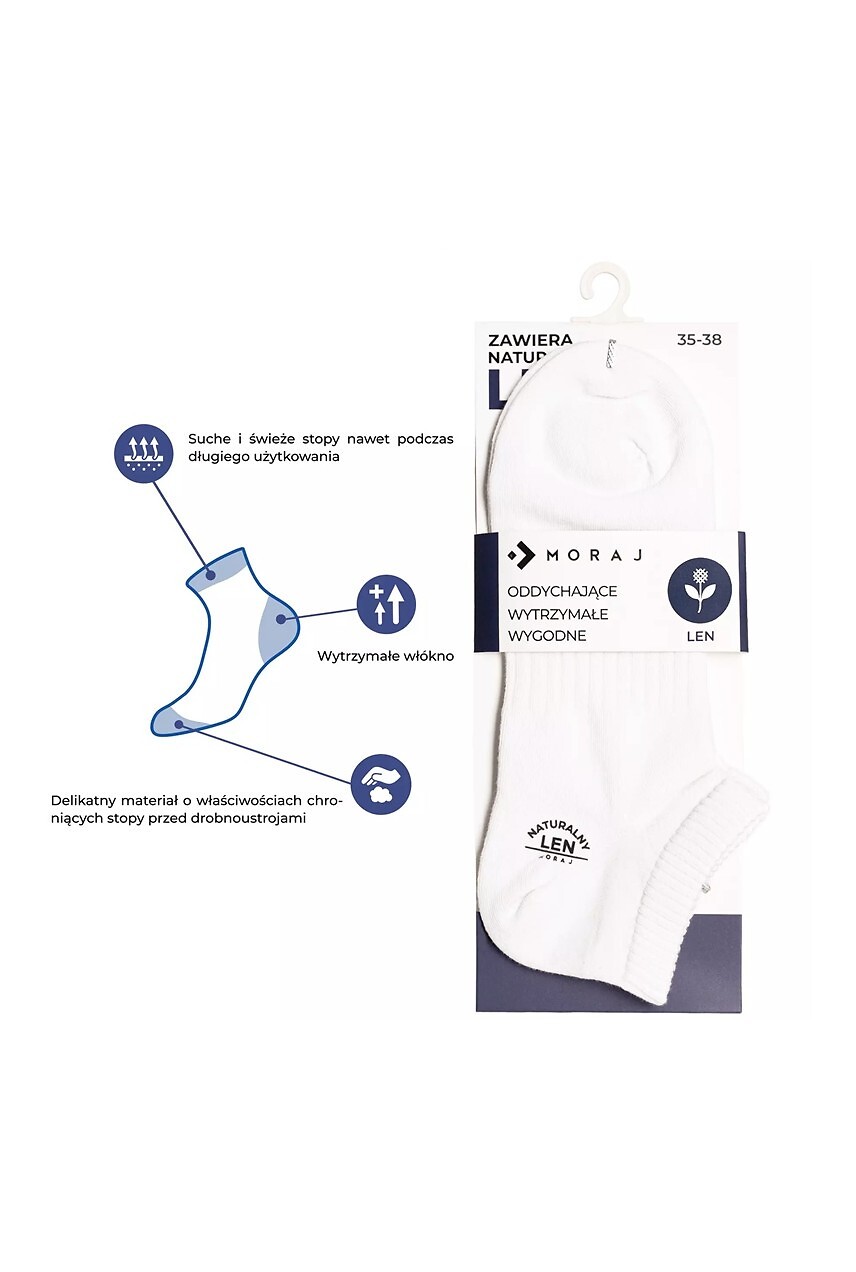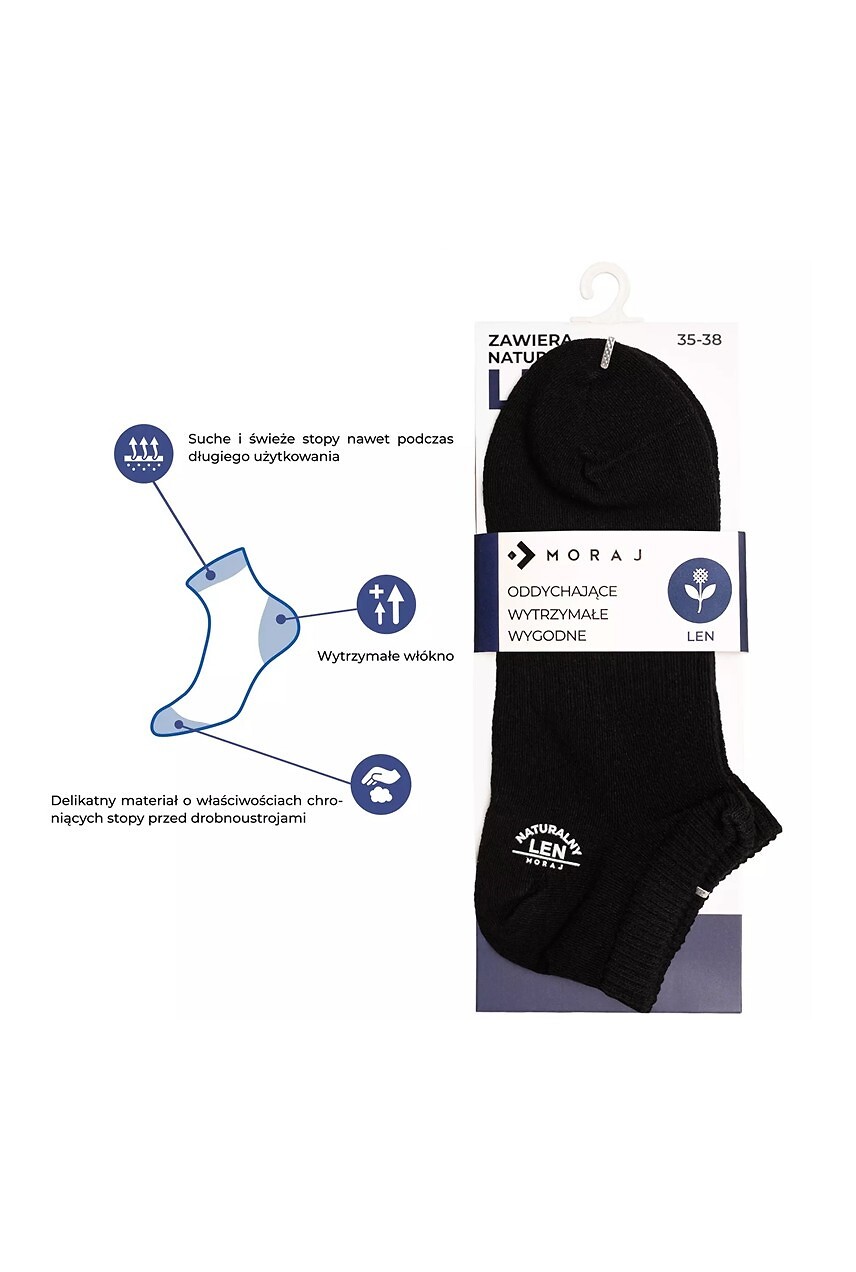 Unisex ponožky - s příměsí lnu - vysoce kvalitní bavlna - zajišťují dobrou termoregulaci - odvádějí vlhkost - eliminují nepříjemné pachy - materiál s antimikrobiálními vlastnostmi - tvarovaná pata - perfektně přizpůsobí noze - dostupné barvy: bílá, černá, tmavě modrá - náhodně vybrány Složení: 55% bavlna, 30% polyamid, 13% len, 2% elastan