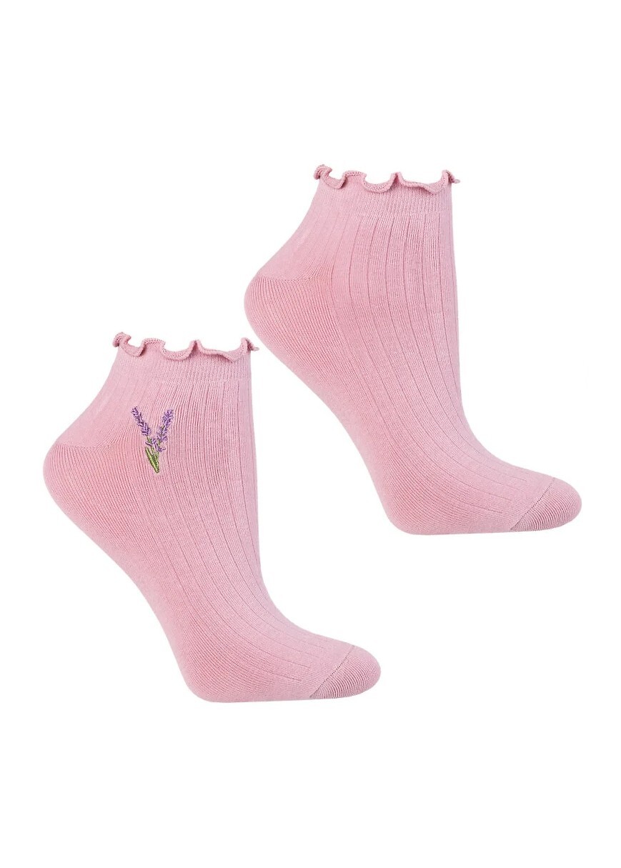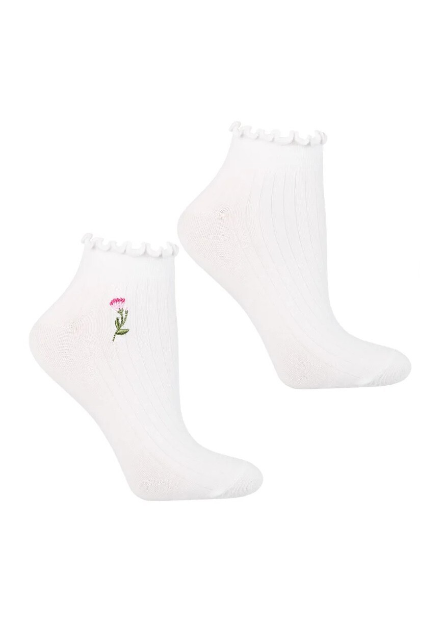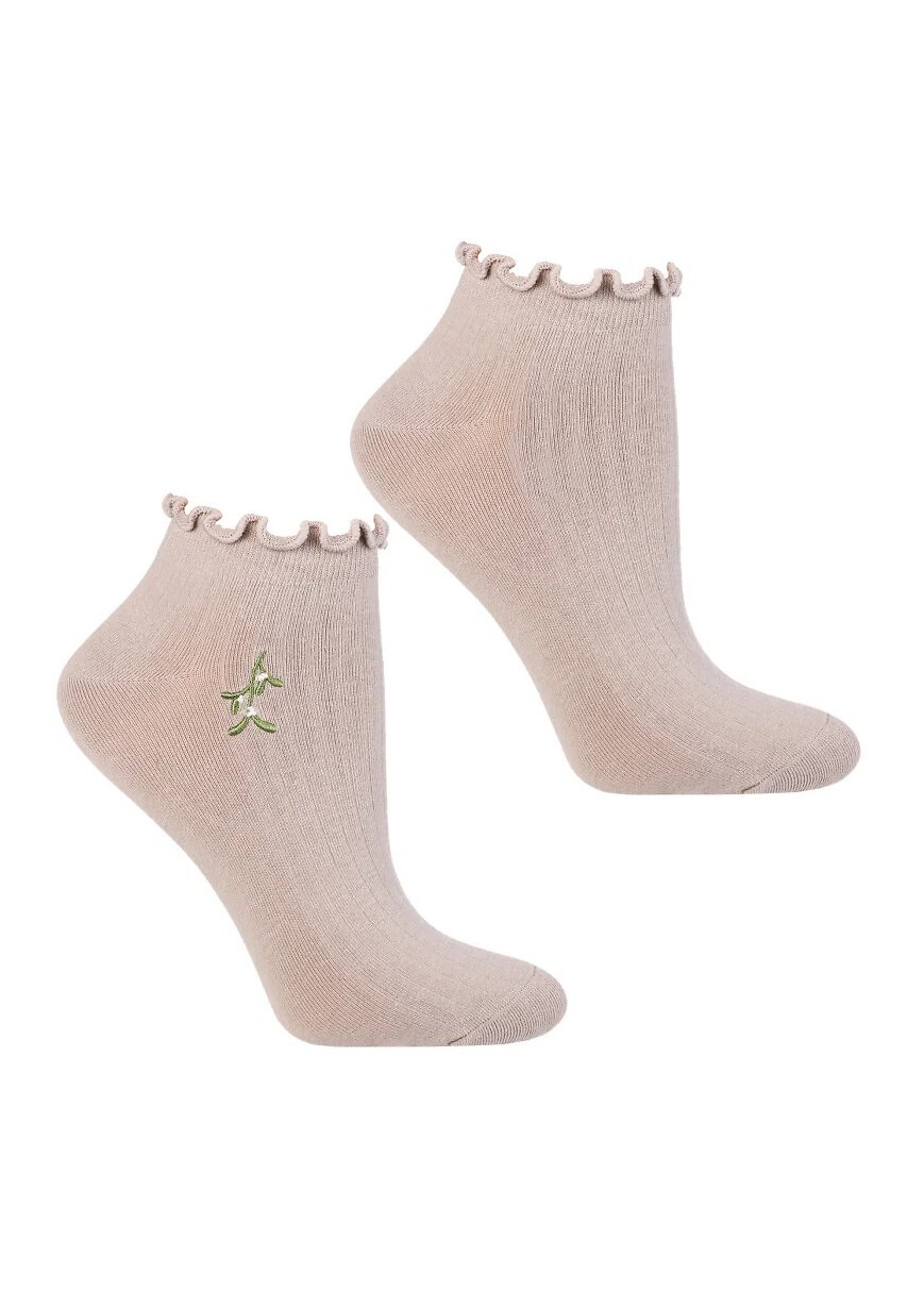 Dámské kotníkové ponožky - vyrobené z žebrované bavlny - zdobené jemnou květinovou výšivkou - perfektně padnou na nohu - velmi příjemné na dotek - dostupné barvy, náhodně vybrané: béžová, ecru, růžová Složení: 69% bavlna, 28% polyester, 3% elastan