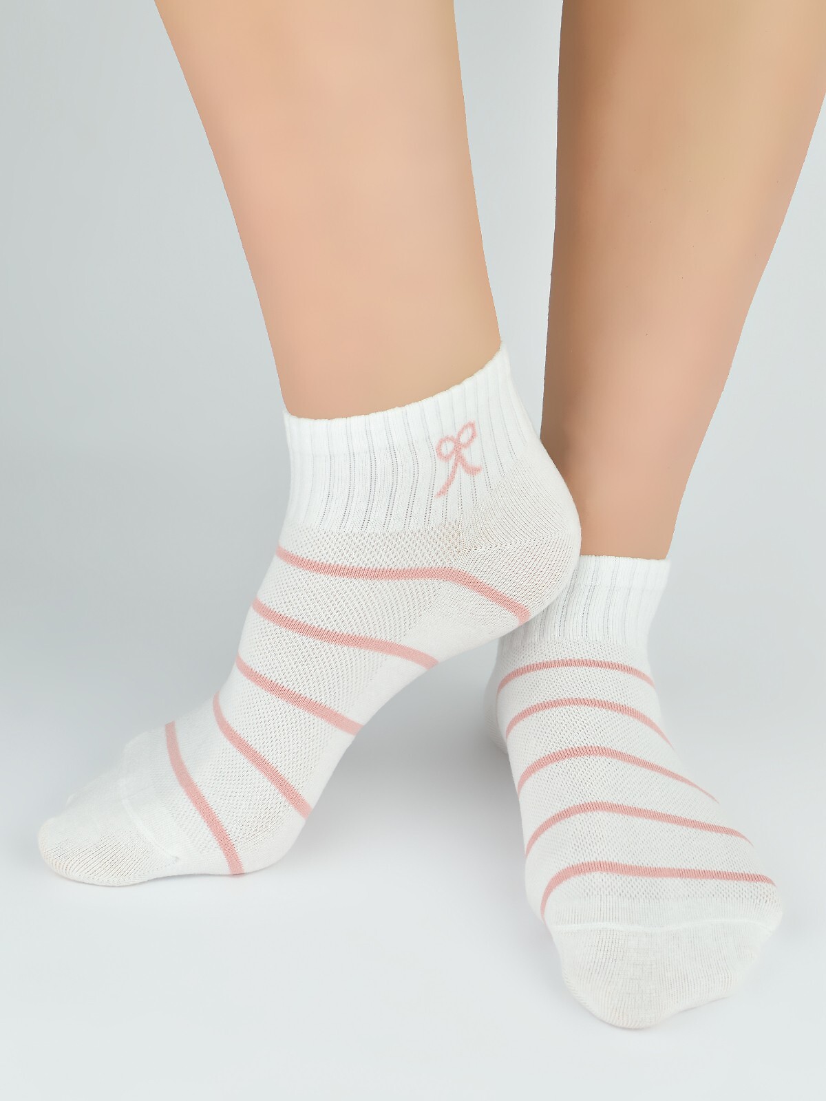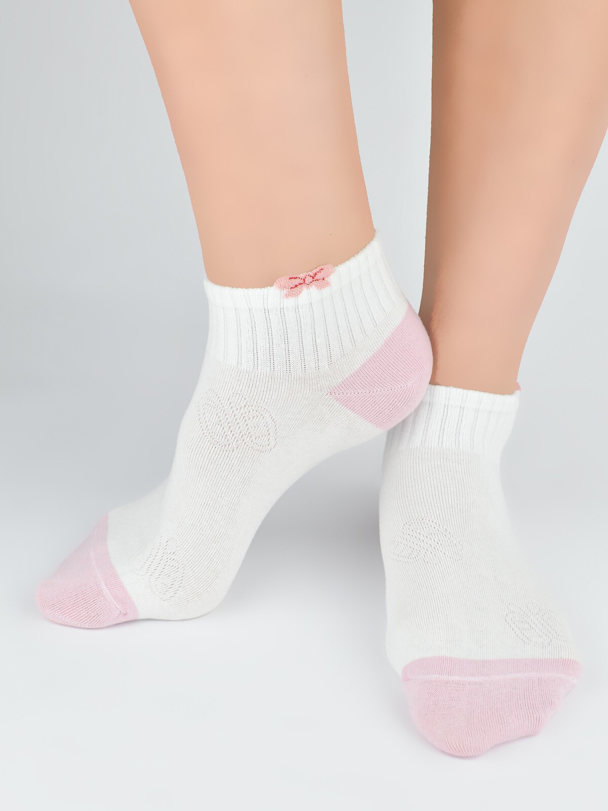 Dámské ponožky - z bavlny - vzorované - jemné, příjemné na dotek - ploché švy - nekompresní manžeta - dostupné barvy vybrané náhodně: bílá a růžová Složení: 75% bavlna, 22% polyester, 3% elastan