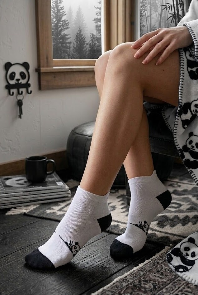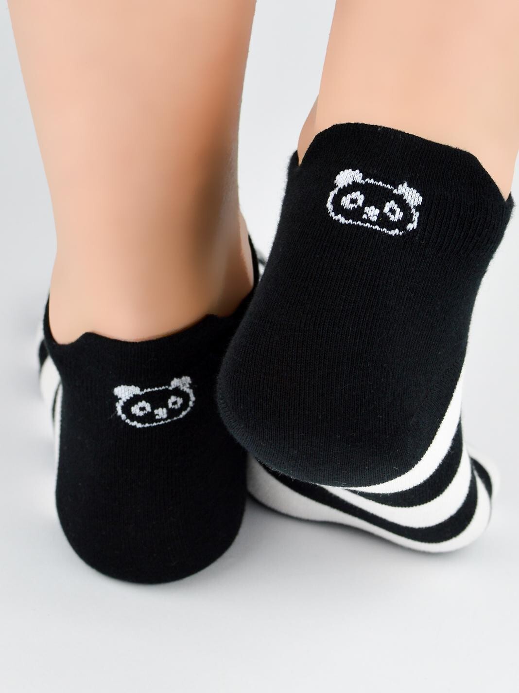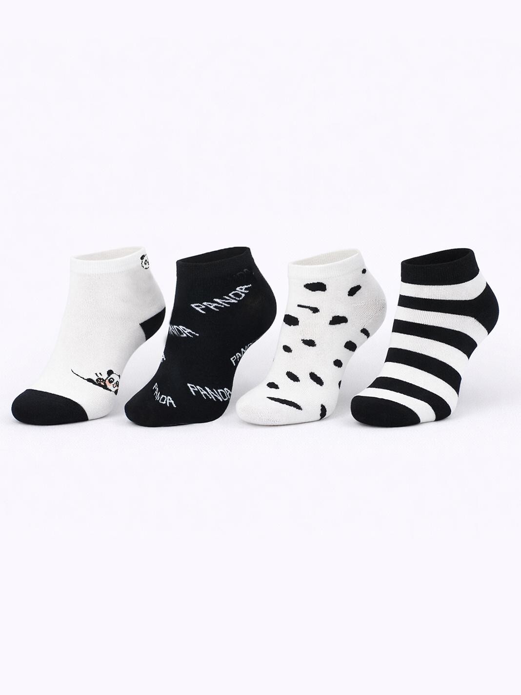 Dámské bavlněné ponožky - zdobené vzory pand - jemné, příjemné na dotek - ploché švy - nekompresní manžeta - dostupné barvy vybrané náhodně: bílá, černá, pruhy, puntíky Složení: 75% bavlna, 22% polyester, 3% elastan