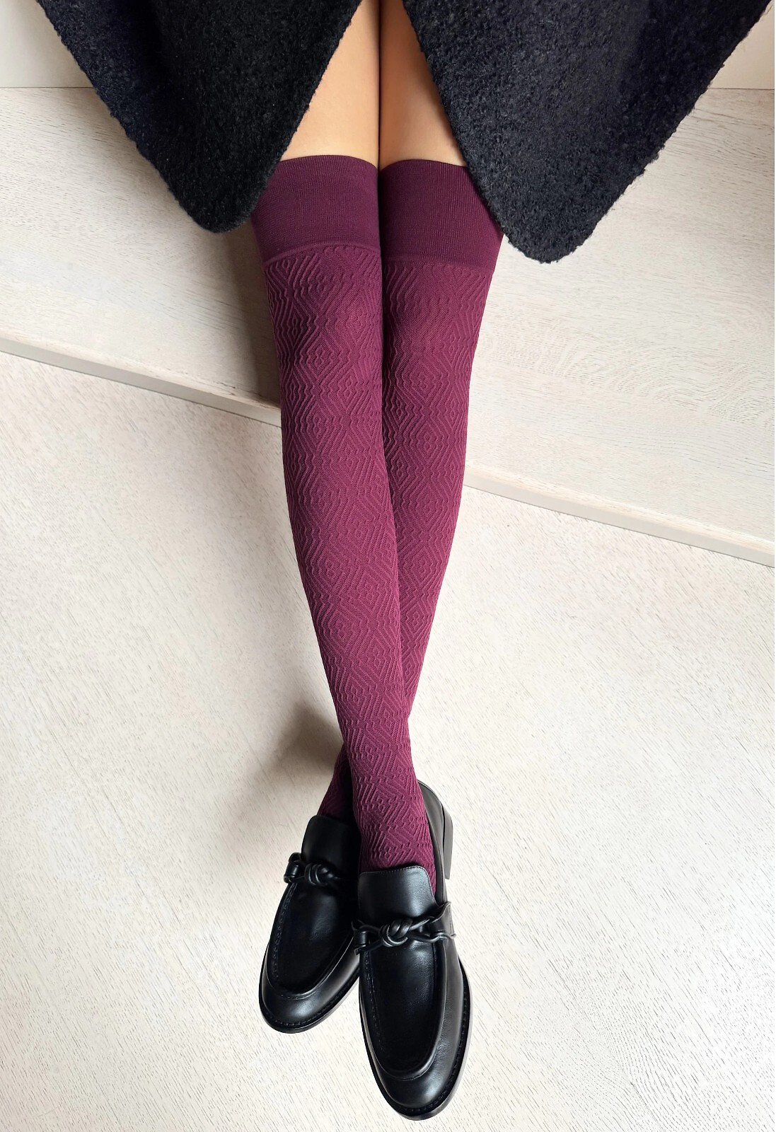 Dámské podkolenky - vysoce kvalitní mikrovlákno - nekompresní manžeta - zdobené diamantovým vzorem Složení: 95% polyamid, 5% elastan