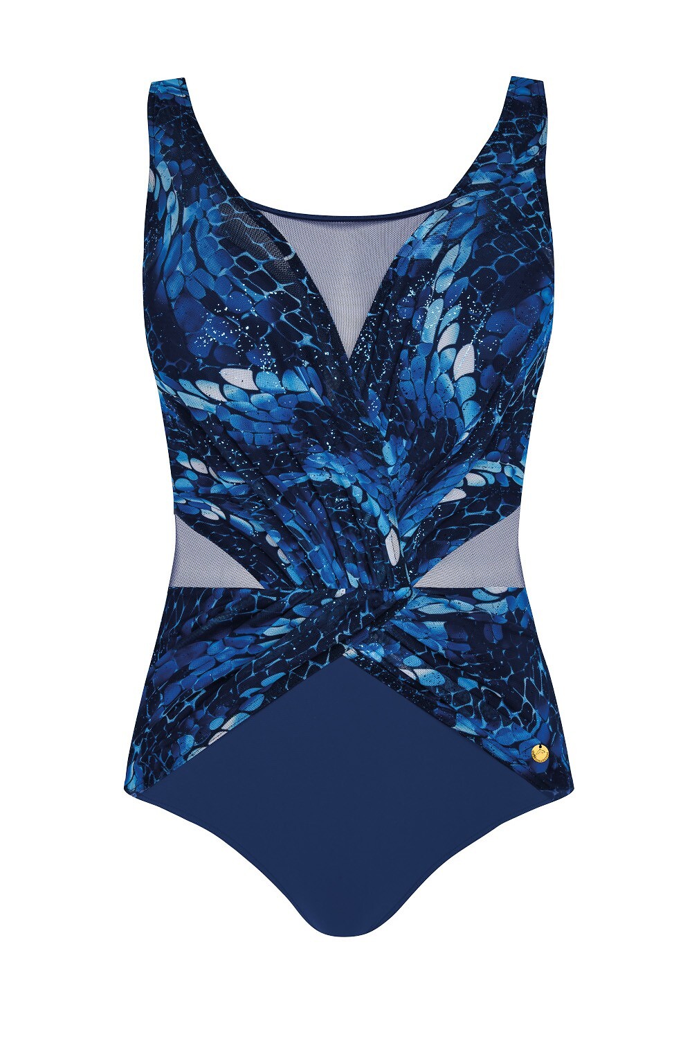 Jednodílné plavky - zpevňující košíček - nastavitelná, neodepínatelná ramínka - ozdobné síťované vsadky - hladká záda, výstřih vzadu Složení: 85% polyamid, 15% elastan