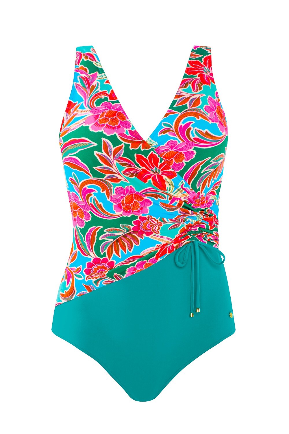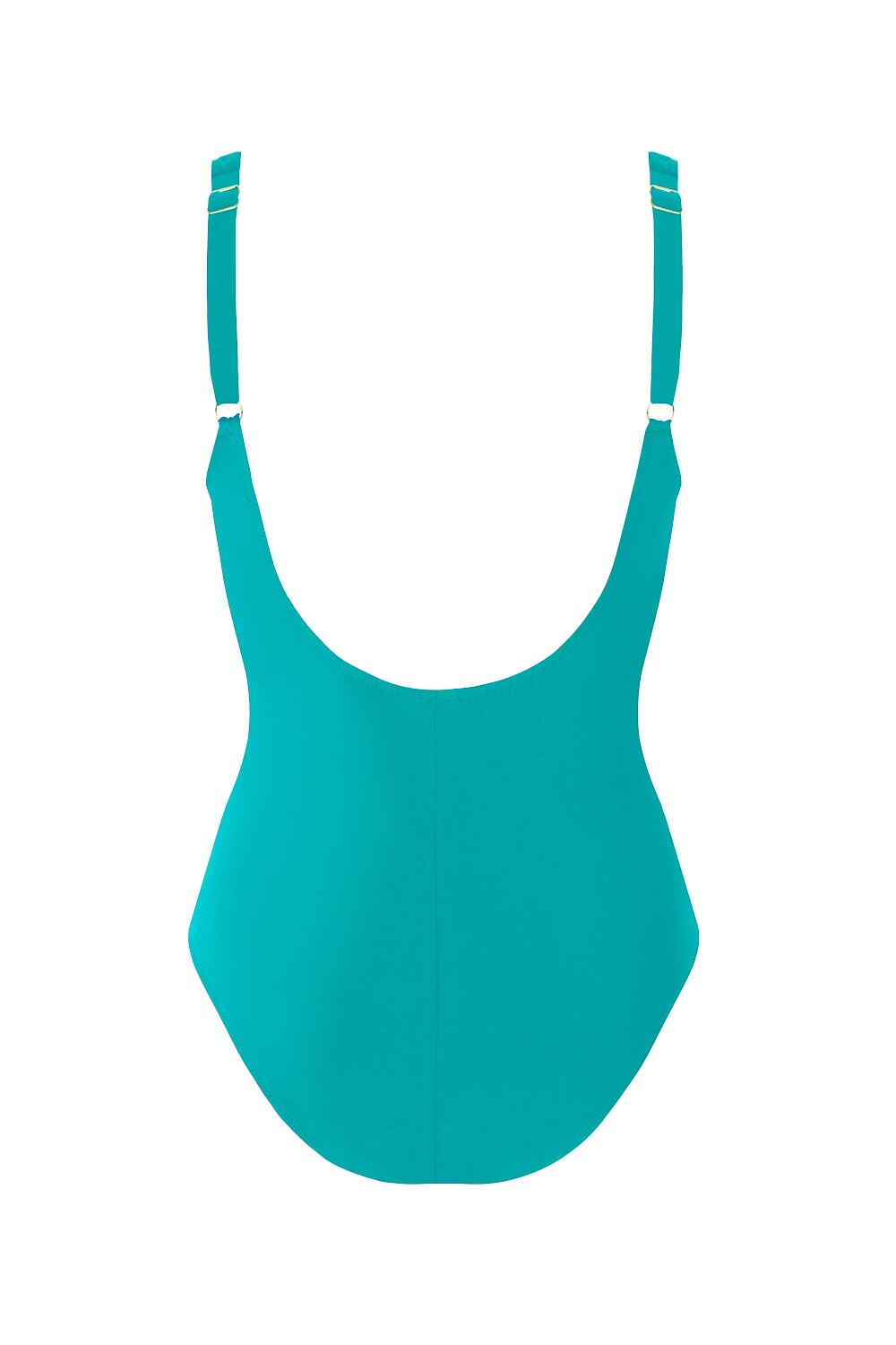 Jednodílné plavky - s kosticemi, vyztužené košíčky - širší ramínka, nastavitelná vzadu - pod poprsím, řasení vpředu - jednobarevné, rozkrojená záda Složení: 85% polyamid, 15% elastan
