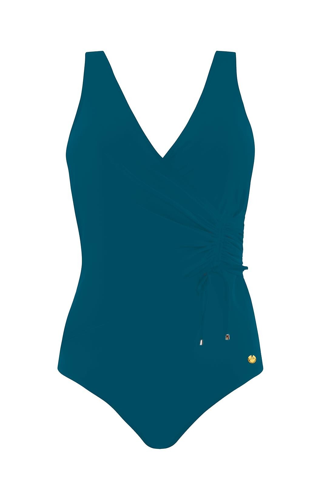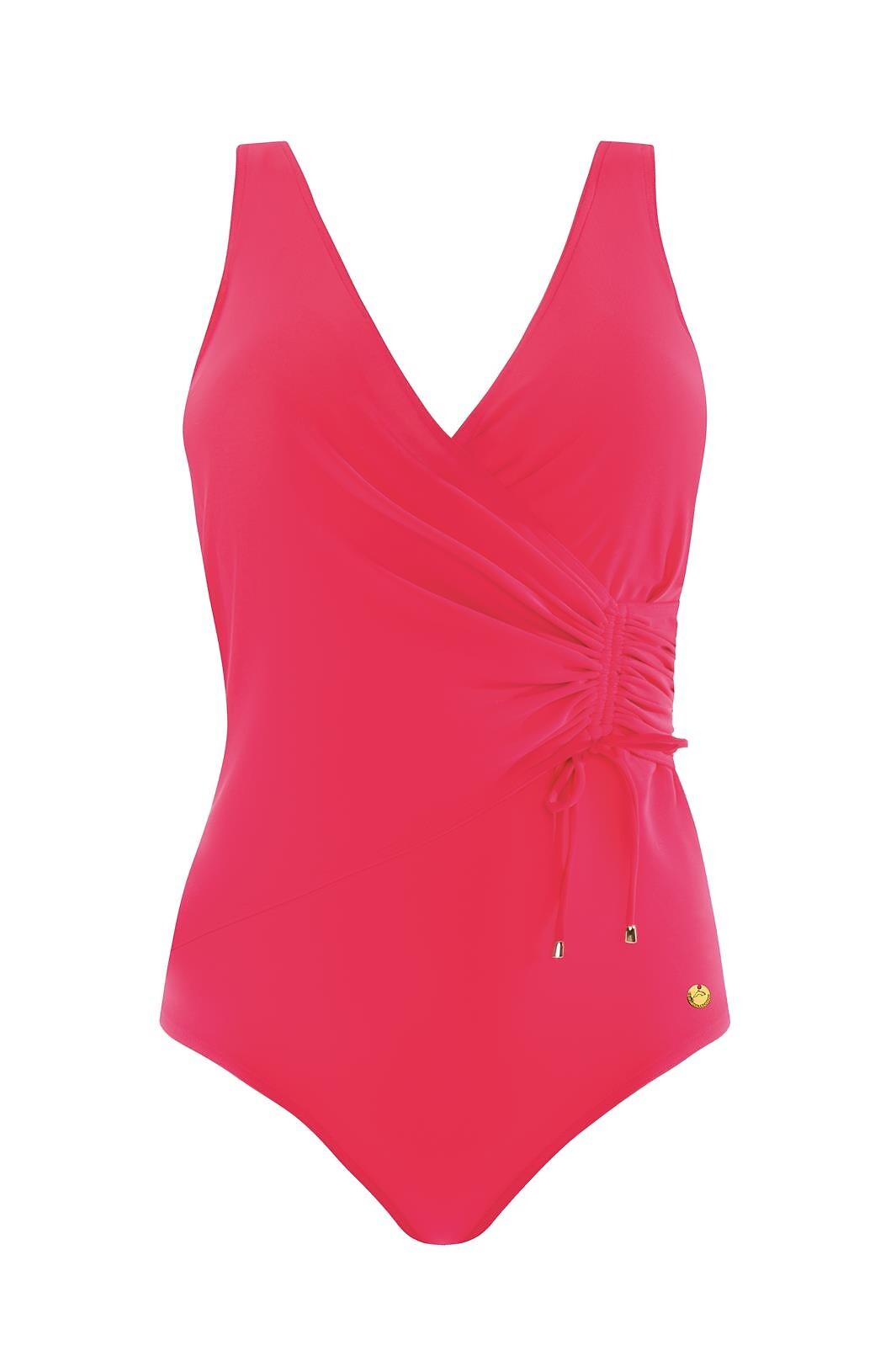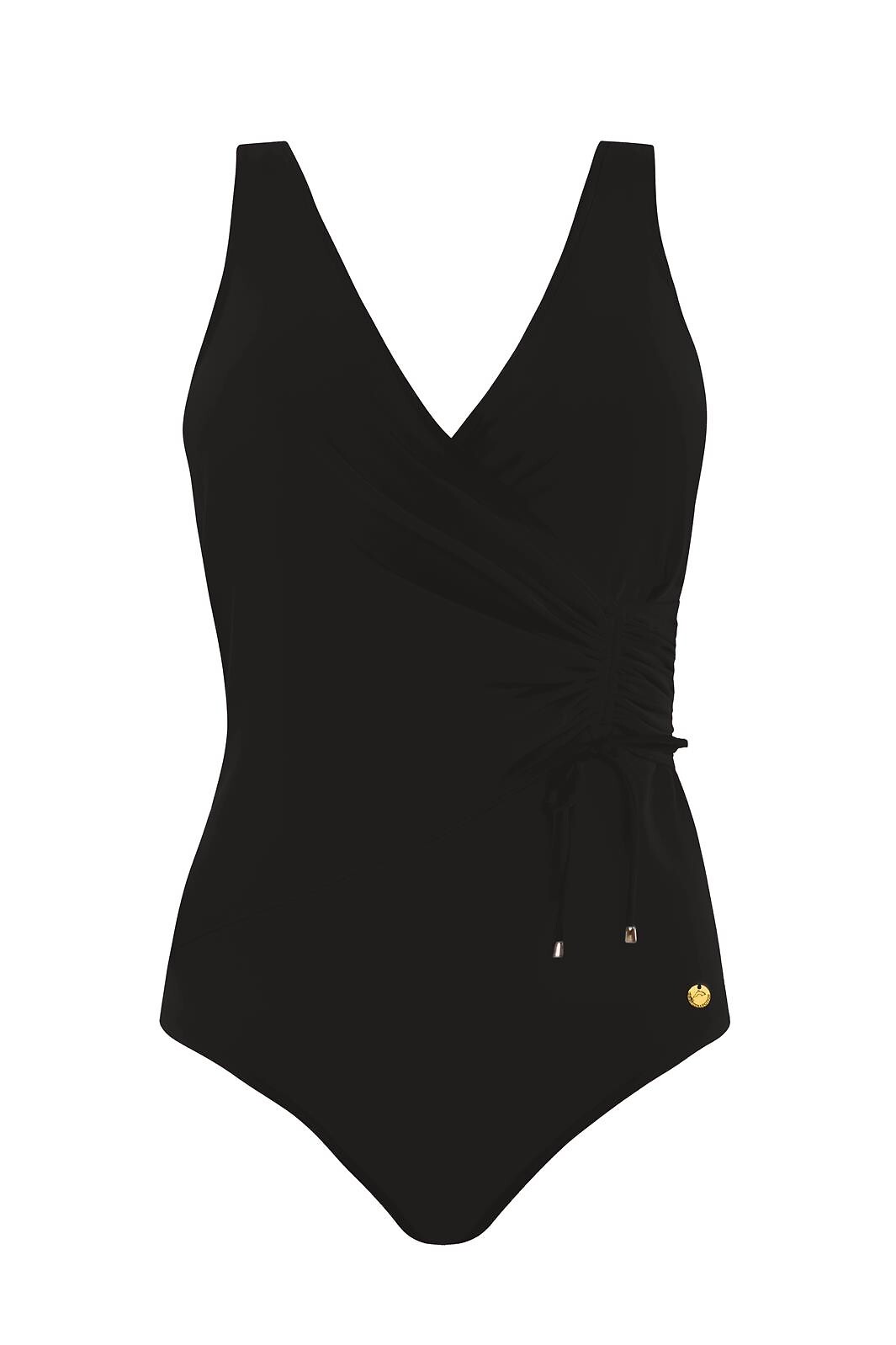 Jednodílné plavky - nový design - košíčky Full Soft Cup - s kosticemi - nastavitelná ramínka - boky zdobené atraktivními volánky - model opticky zeštíhluje postavu - model je k dispozici v maximálních velikostech - odolné vůči chlóru Složení: 80% polyamid, 20% elastan