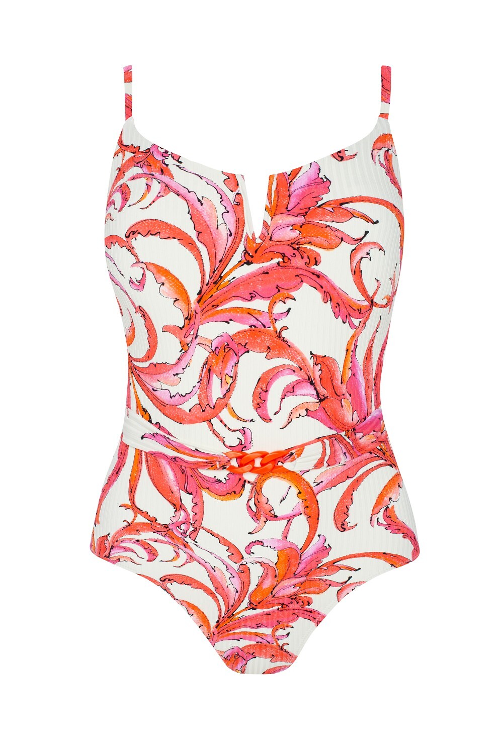 Jednodílné plavky - košíčky s kosticemi a tenkou odnímatelnou houbičkou - ramínka odnímatelná pouze vzadu - ozdobný rozparek u košíčků - vysoce střižená záda - odolné vůči chloru Složení: 88% polyamid, 12% elastan