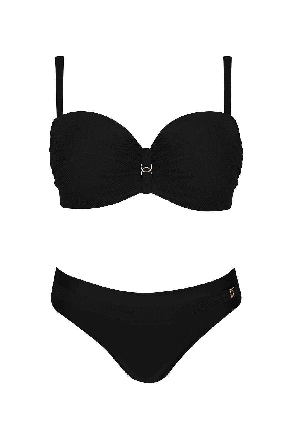 Dvoudílné plavky - vyztužené, košíčky s kosticemi, lemované jemně vzorovanou síťovinou - dekorace mezi košíčky - nastavitelná, odnímatelná ramínka - klasický střih, hladké kalhotky, pas zdobený vzorovanou síťovinou Složení: 76% polyamid, 24% elastan