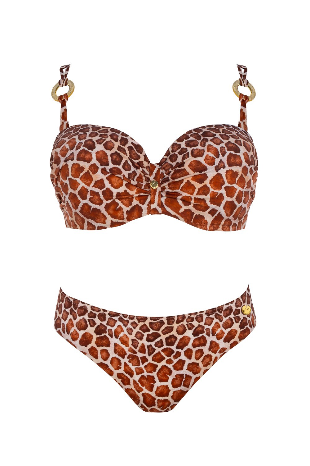 Dvoudílné plavky - s kosticemi, vyztužené košíčky - odnímatelná, nastavitelná ramínka, zdobené kroužky - pásek zapínaný kovovou sponou, s možností nastavení obvodu - klasický střih kalhotek, které ladí s oblečením Složení: 85% polyamid, 15% elastan